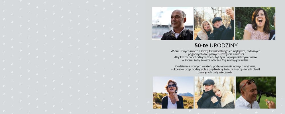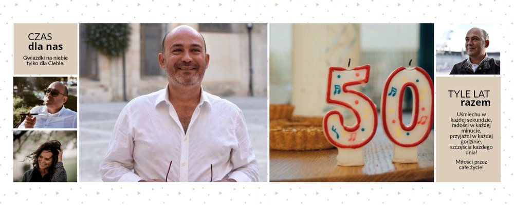 Prezent na 50 urodziny to szablon, z którym zaprojektujesz wyjątkowy fotoalbum z najpiękniejszymi wspomnieniami zachowanymi na fotografiach. Zbierz najważniejsze zdjęcia bliskiej Ci osoby i skomponuj oryginalny album! Nietuzinkowa grafika, mnóstwo miejsca na fotografie oraz wzruszające życzenia sprawią, że fotoalbum z szablonem Prezent na 50 urodziny stanie się cudowną pamiątką na wiele, wiele lat!