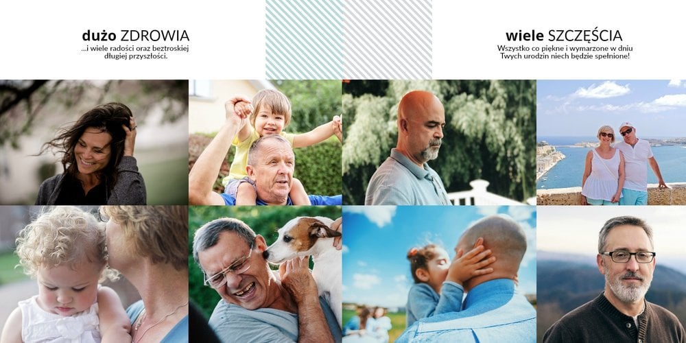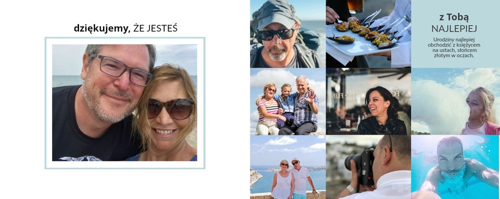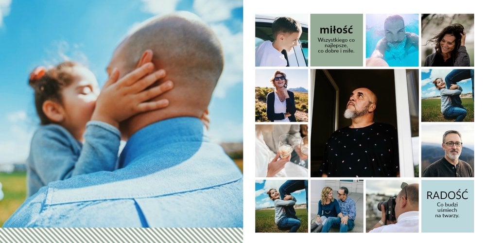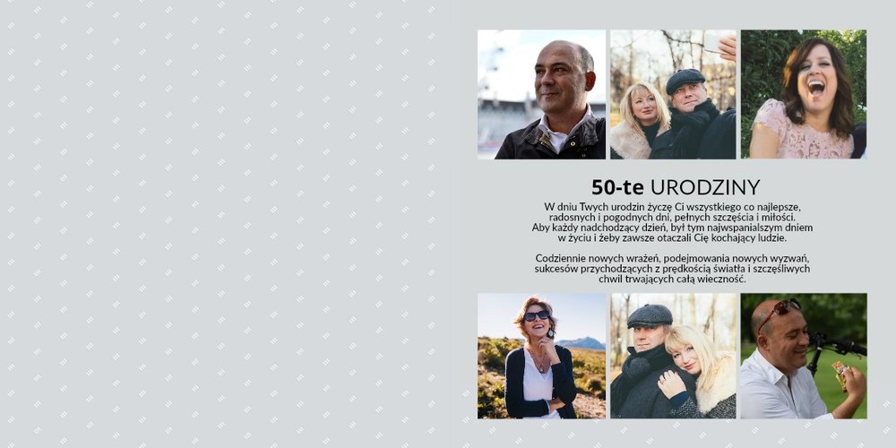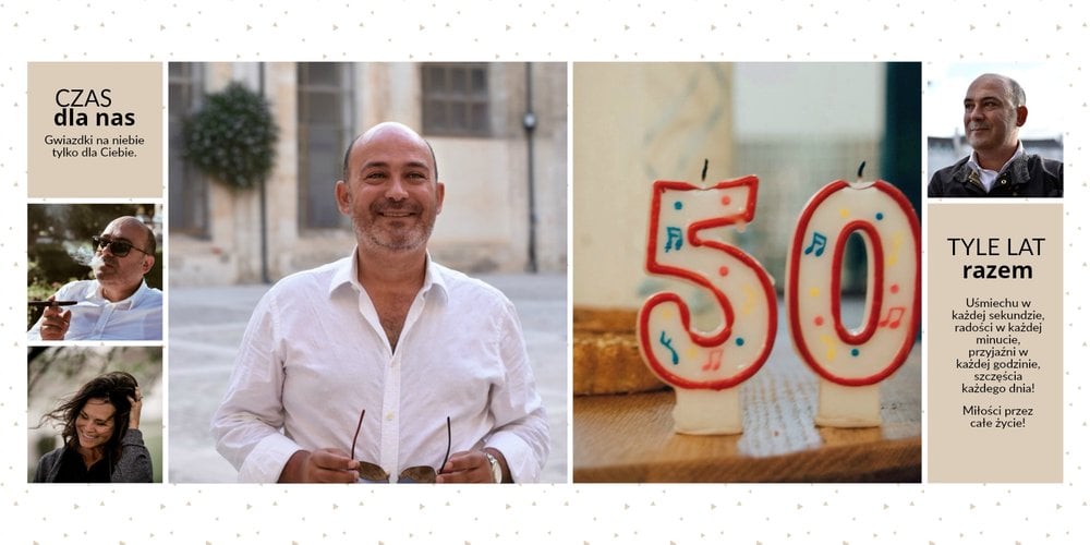 Prezent na 50 urodziny to szablon, z którym zaprojektujesz wyjątkowy fotoalbum z najpiękniejszymi wspomnieniami zachowanymi na fotografiach. Zbierz najważniejsze zdjęcia bliskiej Ci osoby i skomponuj oryginalny album! Nietuzinkowa grafika, mnóstwo miejsca na fotografie oraz wzruszające życzenia sprawią, że fotoalbum z szablonem Prezent na 50 urodziny stanie się cudowną pamiątką na wiele, wiele lat!