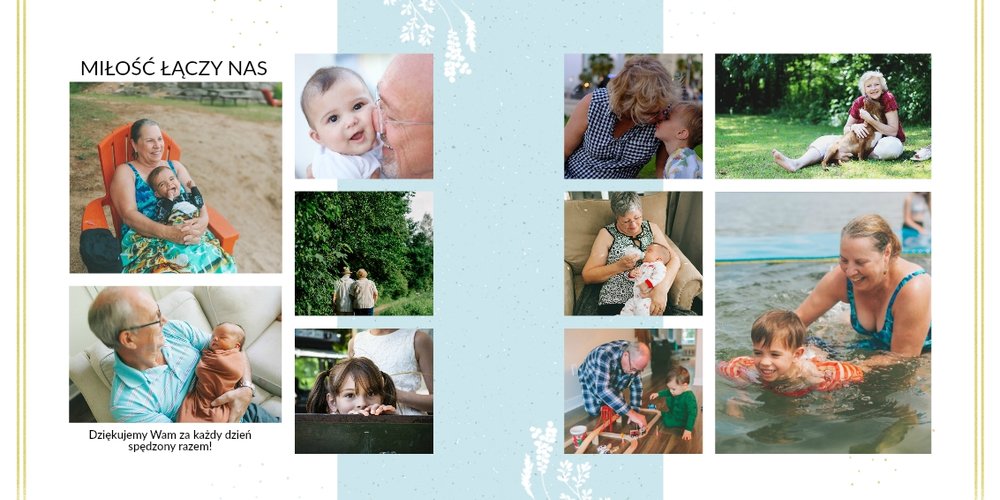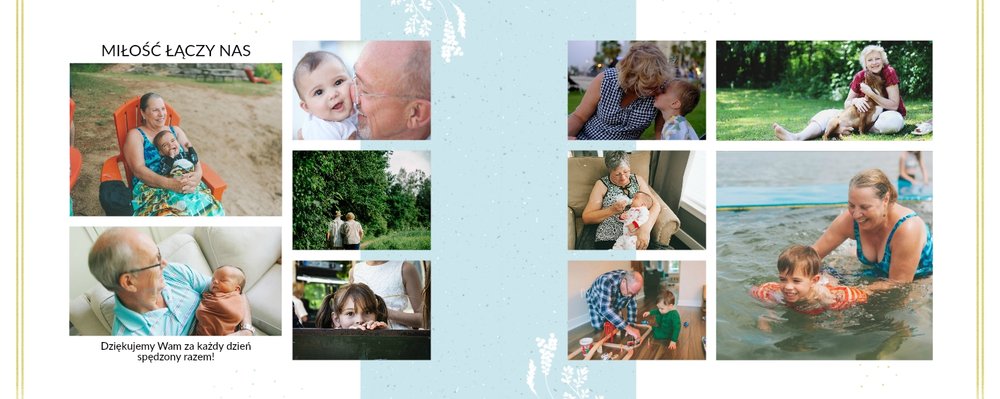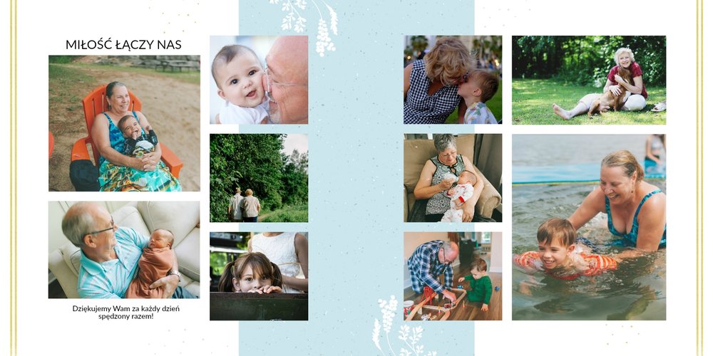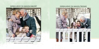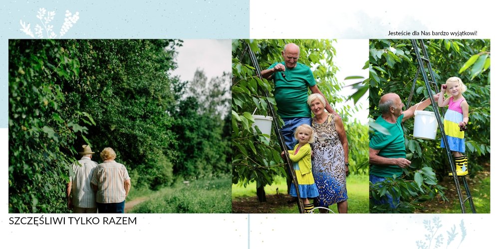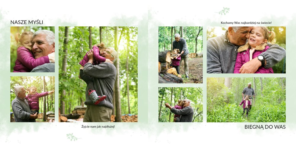 Prezent na Dzień Babci i Dziadka to szablon z którym zaprojektujesz niezwykłą pamiątkę dla dziadków z okazji ich wyjątkowego święta. Przepiękna grafika, wzruszające sentencje sprawią, że Babcia i Dziadek będą powracać do wspomnień zamkniętych w fotoalbumie przez wiele, wiele lat!