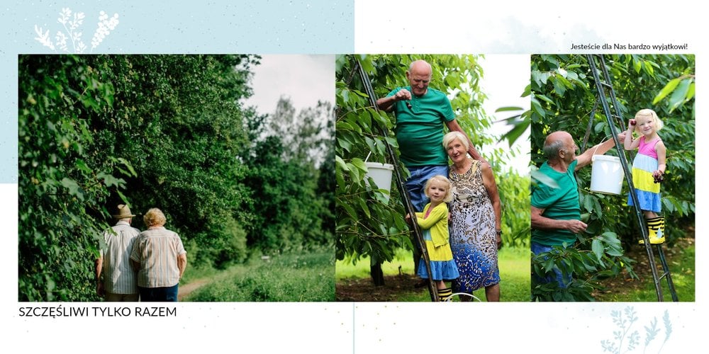 Prezent na Dzień Babci i Dziadka to szablon z którym zaprojektujesz niezwykłą pamiątkę dla dziadków z okazji ich wyjątkowego święta. Przepiękna grafika, wzruszające sentencje sprawią, że Babcia i Dziadek będą powracać do wspomnień zamkniętych w fotoalbumie przez wiele, wiele lat!