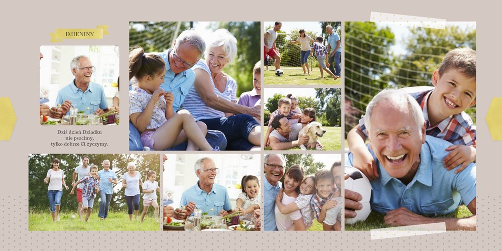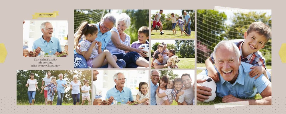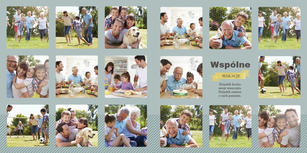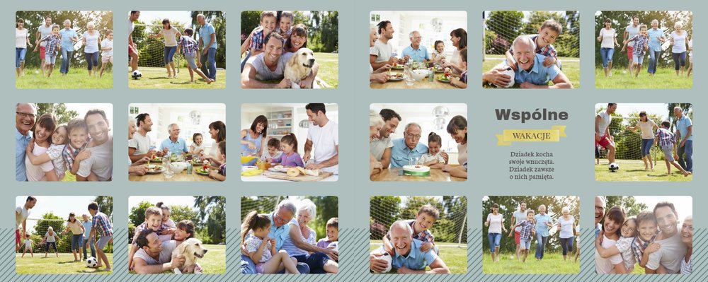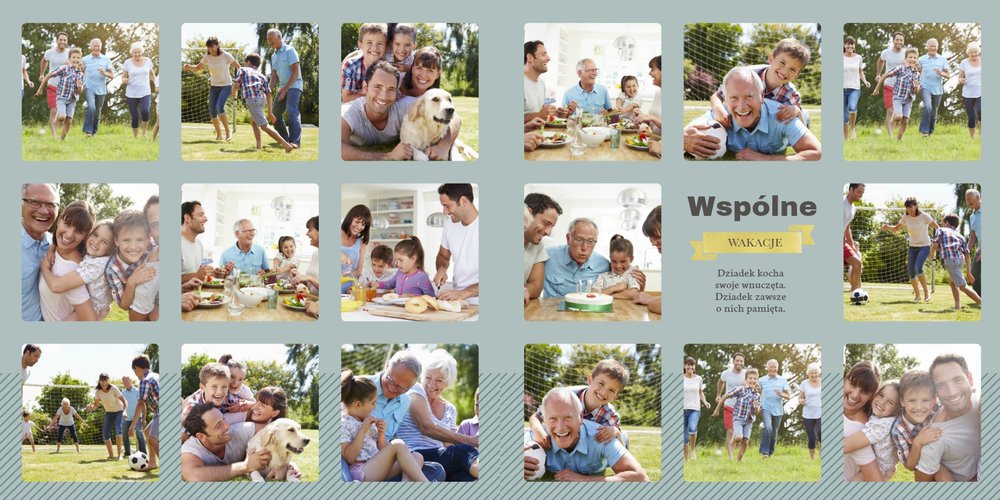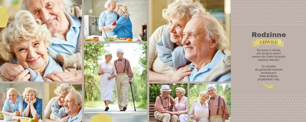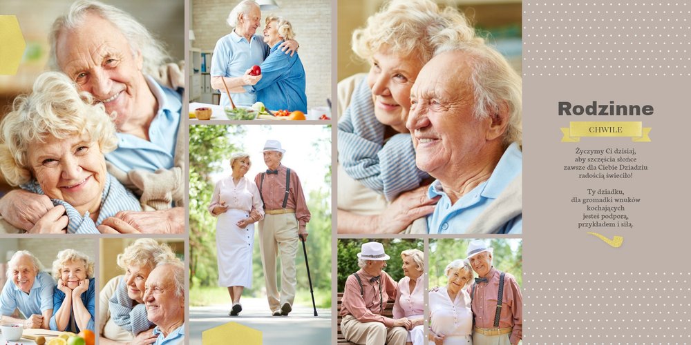 Fotoalbum z szablonem Dzień Dziadka dedykowany jest wszystkim kochającym wnukom , którzy pragną w tym wyjątkowym dniu sprawić swoim Dziadkom radość. Zdjęcia połączone z pięknym motywem szablonu oraz z oryginalnymi wierszykami, wywołają u Dziadka pozytywne emocje. Zaprojektuj rodzinną książkę i spraw Dziadkowi prezent na lata.
