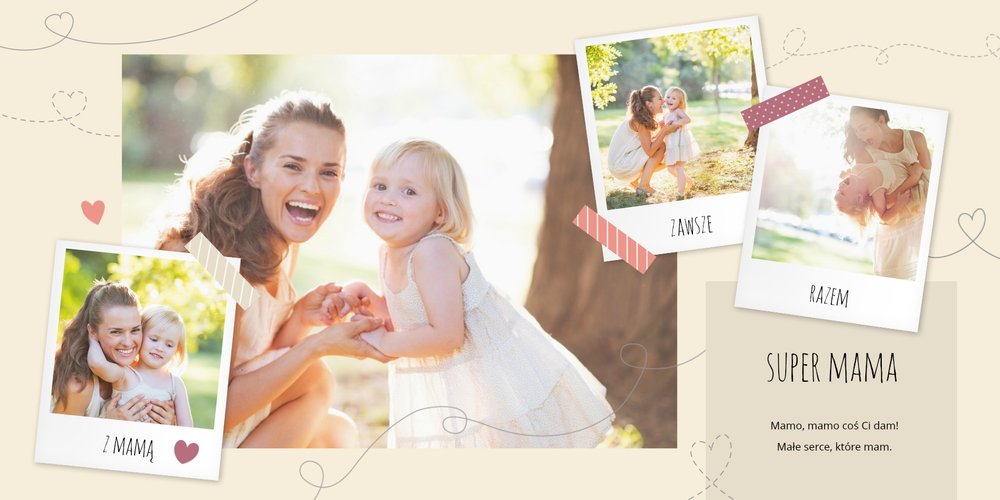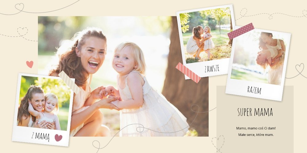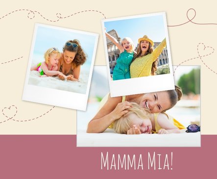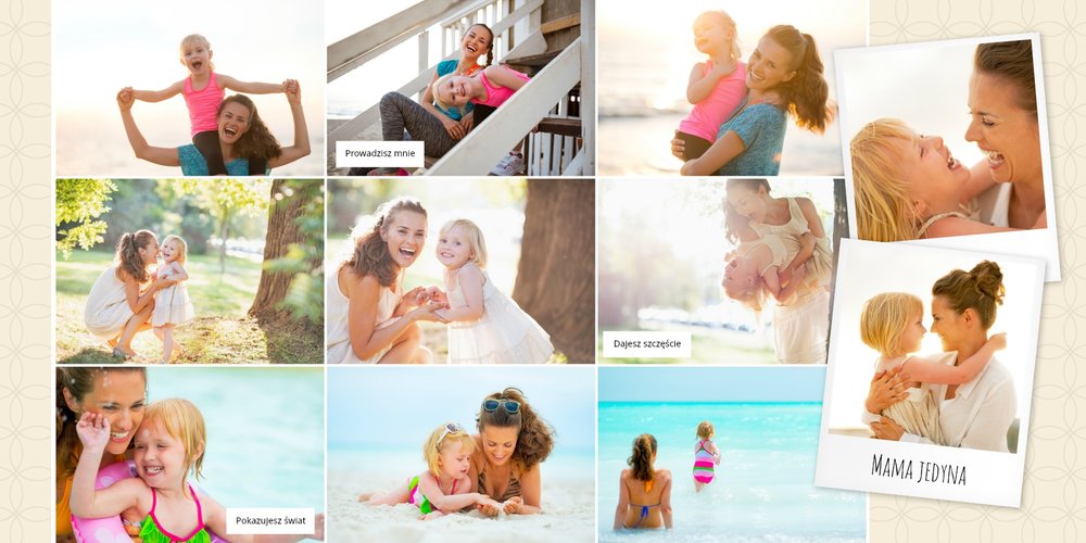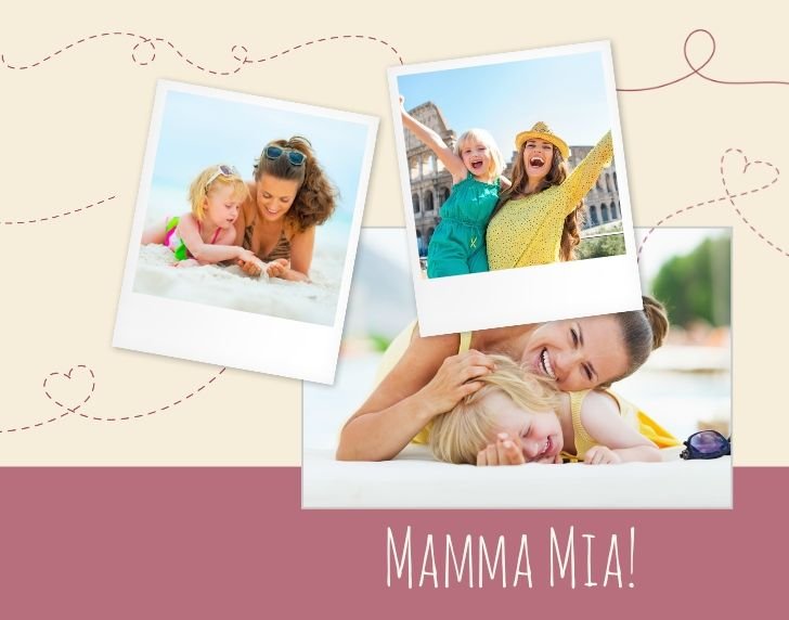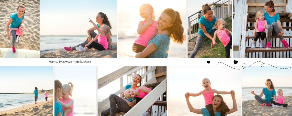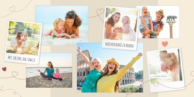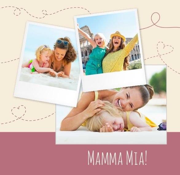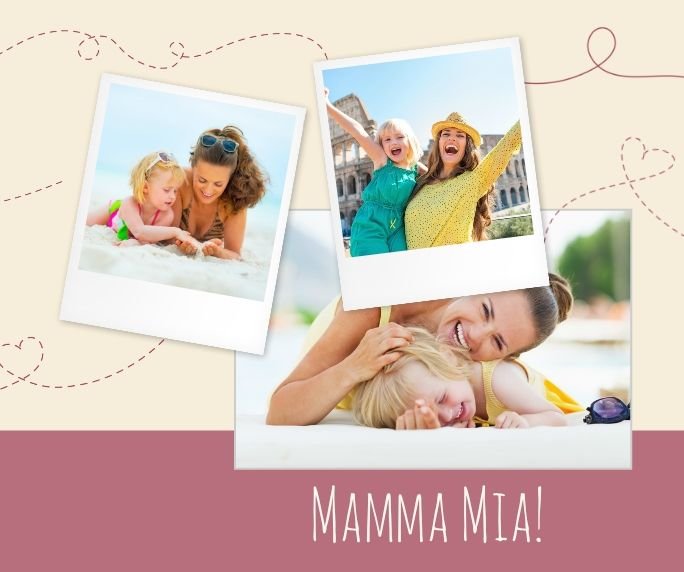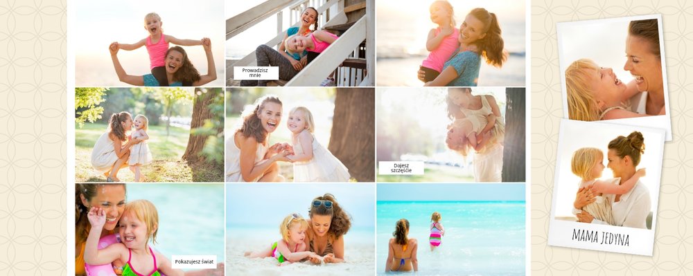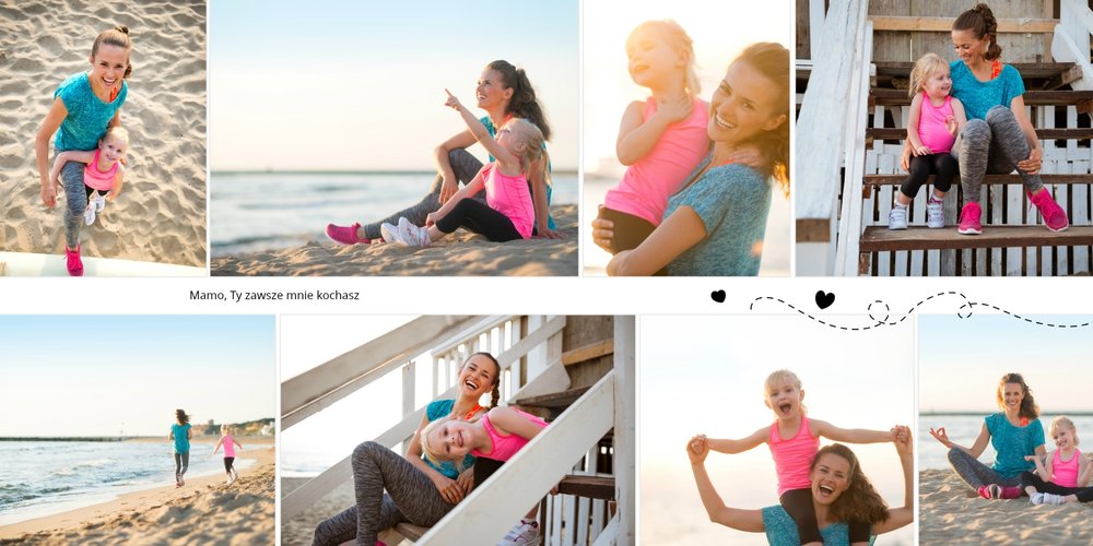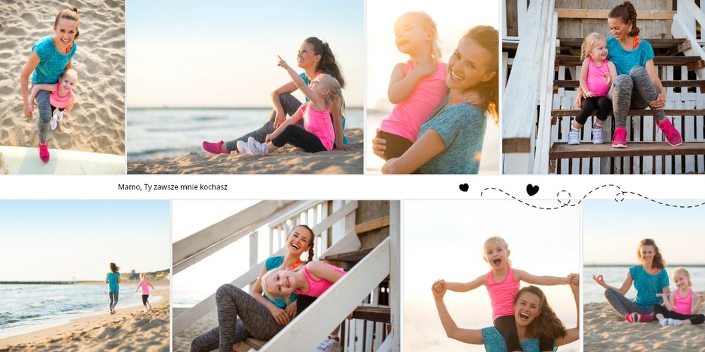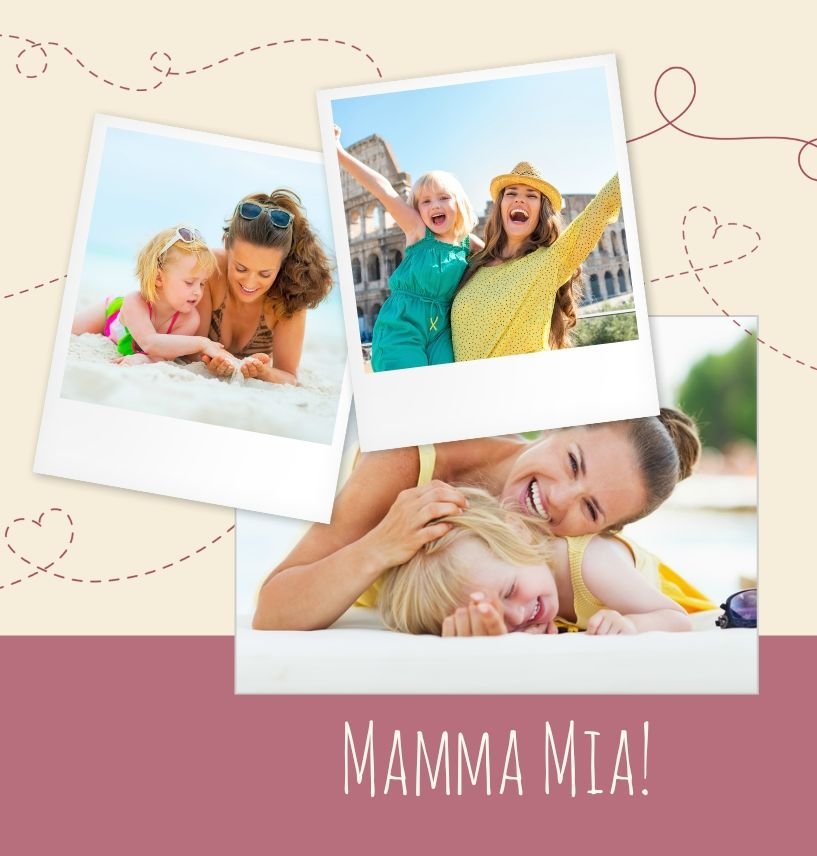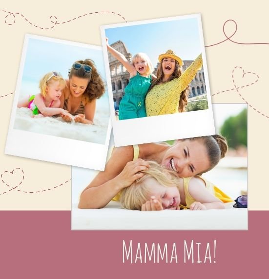 Bycie mamą przyprawia o zawrót głowy tak, jak w kultowym musicalu “Mamma Mia”, dlatego warto postarać się o nieprzeciętny prezent na Dzień Matki. Fotoalbum na Dzień Mamy to upominek, który będzie przywoływał wspomnienia “tych” chwil, uchwyconych na zdjęciach (czasem niekoniecznie skadrowanych w dobrym czasie :) Szablon “Mamma Mia” idealnie nadaje się jako prezent dla mamy rodzeństwa - fikuśne ale subtelne grafiki, trochę szaleństwa z nutką nostalgii za przemijającym dzieciństwem.