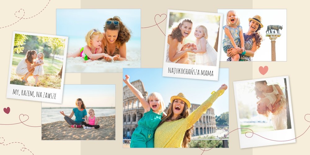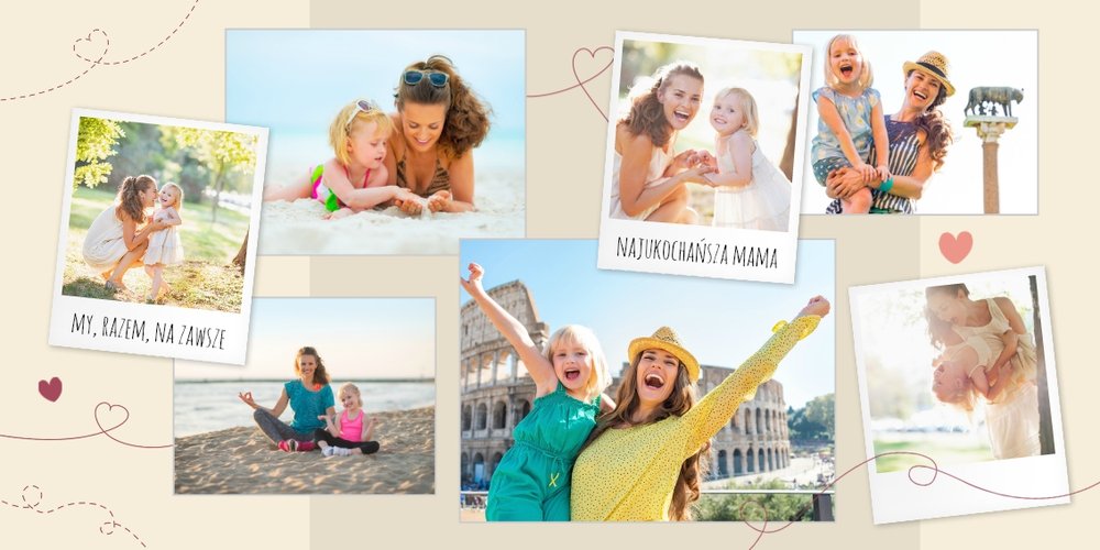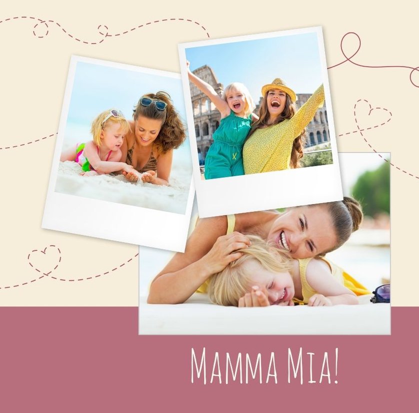 Bycie mamą przyprawia o zawrót głowy tak, jak w kultowym musicalu “Mamma Mia”, dlatego warto postarać się o nieprzeciętny prezent na Dzień Matki. Fotoalbum na Dzień Mamy to upominek, który będzie przywoływał wspomnienia “tych” chwil, uchwyconych na zdjęciach (czasem niekoniecznie skadrowanych w dobrym czasie :) Szablon “Mamma Mia” idealnie nadaje się jako prezent dla mamy rodzeństwa - fikuśne ale subtelne grafiki, trochę szaleństwa z nutką nostalgii za przemijającym dzieciństwem.