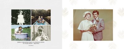 Prezent na podziękowanie to szablon, z którym zaprojektujecie najpiękniejszy fotoalbum z podziękowaniami dla rodziców. Prezent dla rodziców powinien być wyjątkowy i powinien przypominać o Waszej wdzięczności za trud, jaki włożyli oni w Wasze wychowanie. Oryginalny szablon z delikatną grafiką, wzruszającymi tekstami oraz pięknymi układami zdjęć pozwoli zaprojektować fotoksiążkę lub fotoalbum, który będzie wzbudzał wzruszenie u Waszych rodziców przez wiele, wiele lat.