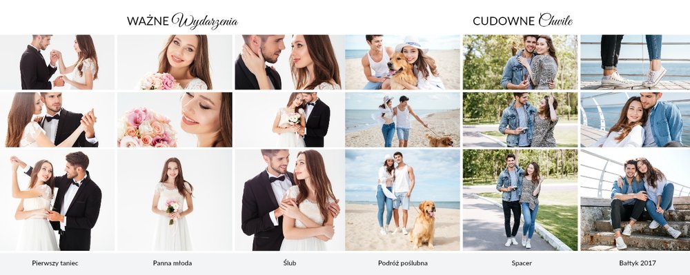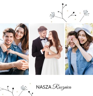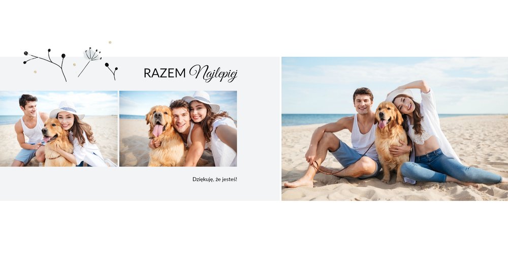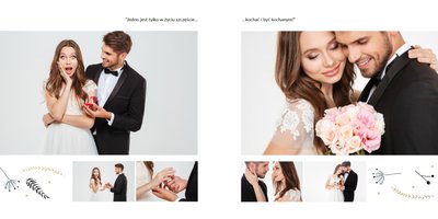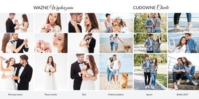 Z szablonem Prezent na rocznicę ślubu zaprojektujesz piękną pamiątkę pełną wzruszających wspomnień zachowanych we wspólnych fotografiach. Cała historia Waszej miłości w jednym miejscu! Delikatna grafika, oryginalne układy zdjęć i miłosne sentencje sprawią, że fotoalbum stanie się pamiątką na długie lata!