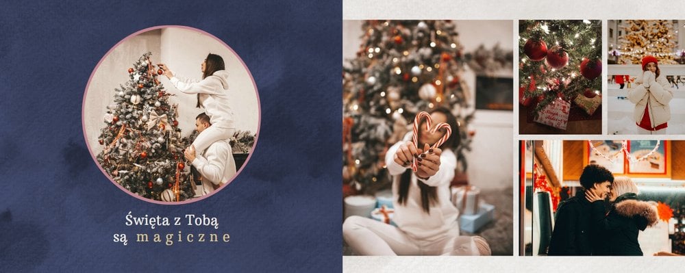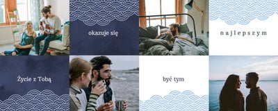 Z pomocą fotoalbumu "Prezent na rocznicę związku" wyrazisz swoje uczucia oraz na zawsze utrwalisz Wasze najpiękniejsze wspomnienia. Główny motyw kolorystyczny to ciemne, granatowe odcienie połączone z delikatną złamaną bielą i szarością. Szablon uzupełniają również pastelowe kolory dodane jako akcenty. Tak dobrana paleta kolorystyczna idealnie łączy się z marzycielskimi wzorami, dodając całości romantyczny wygląd.