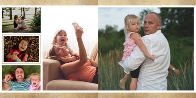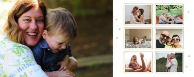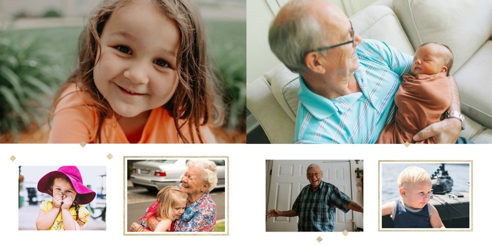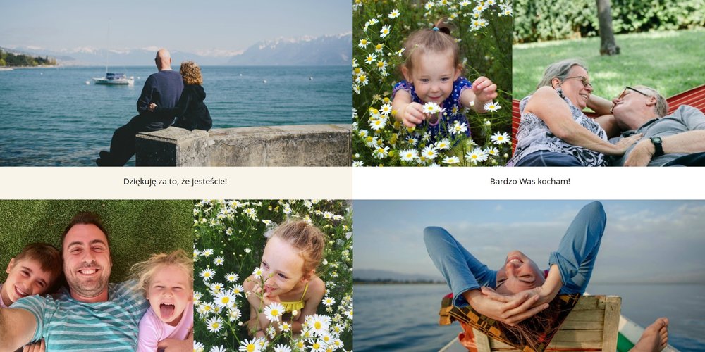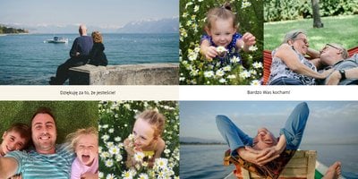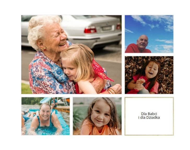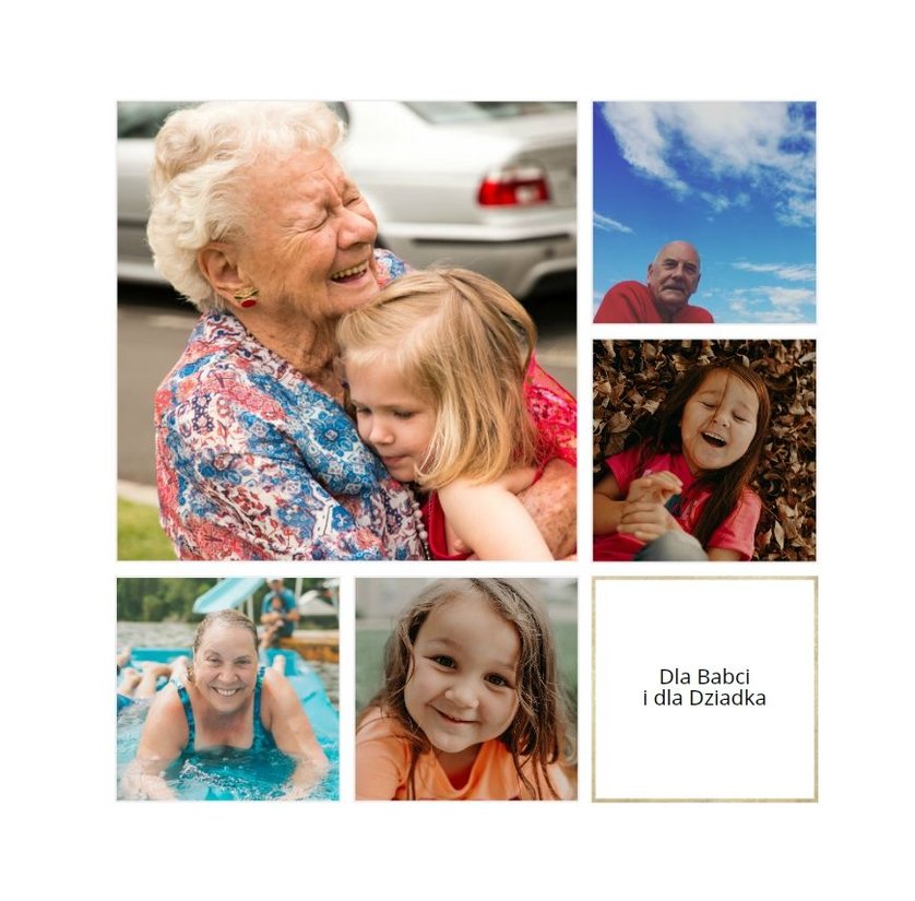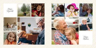 Szablon Dla najlepszych Dziadków został przygotowany przede wszystkim jako propozycja prezentu na Dzień Babci i Dziadka, jest jednak na tyle uniwersalny, że możesz również sprezentować fotoksiążkę z nim z okazji np. urodzin Babci, imienin Dziadka czy innej uroczystości. Znajdziesz w nim minimalistyczne geometryczne tła i złote motywy, które ozdobią Twoje fotografie, ale ich nie przytłoczą. Z tej serii: Ona i On (szablon ślubny), Dla naszych Rodziców (podziękowania dla rodziców), Dla Ciebie (na prezent).