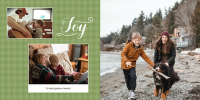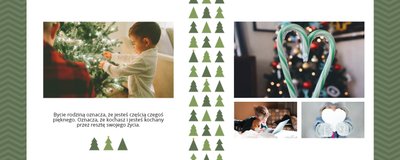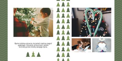 Święta Bożego Narodzenia to magiczny czas spędzany wśród najbliższych. To czas łagodzenia sporów i pięknych życzeń. To także czas prezentów. Podaruj ukochanym osobom piękne wspomnienia w postaci albumów PRINTU zaprojektowanych przy użyciu szablonu "Prezent pod choinkę". To szablon świąteczny, w którym dominują kolory: czerwony - kolor miłości, zielony - kolor nadziei i niebieski - kolor wiary. Całości dopełniają bożonarodzeniowe motywy.
