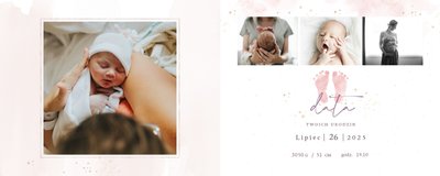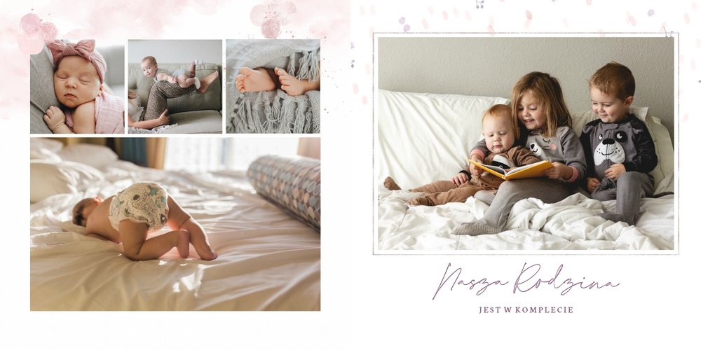 Z szablonem "Roczek córeczki" utrwalisz cenne momenty na dłużej. Pełne bieli i pastelowego fioletu wnętrze idealnie sprawdzi się w połączeniu ze zdjęciami uroczej kruszynki. Ciekawe układy pozwolą Ci umieścić całą masę zdjęć i dodać najważniejsze informacje, takie jak wzrost czy waga po urodzeniu.