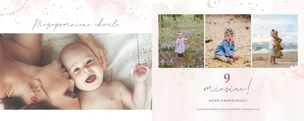 Zatrzymaj pierwszy rok dziecka w nietypowej formie - utrwal każdy ważny moment wewnątrz fotoalbumu. W czasie tego okresu naprawdę wiele się zmienia w życiu malucha. Na wagę złota jest każda minka, czy pierwsze kroki.