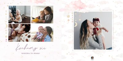 Z szablonem "Roczek córeczki" utrwalisz cenne momenty na dłużej. Pełne bieli i pastelowego fioletu wnętrze idealnie sprawdzi się w połączeniu ze zdjęciami uroczej kruszynki. Ciekawe układy pozwolą Ci umieścić całą masę zdjęć i dodać najważniejsze informacje, takie jak wzrost czy waga po urodzeniu.