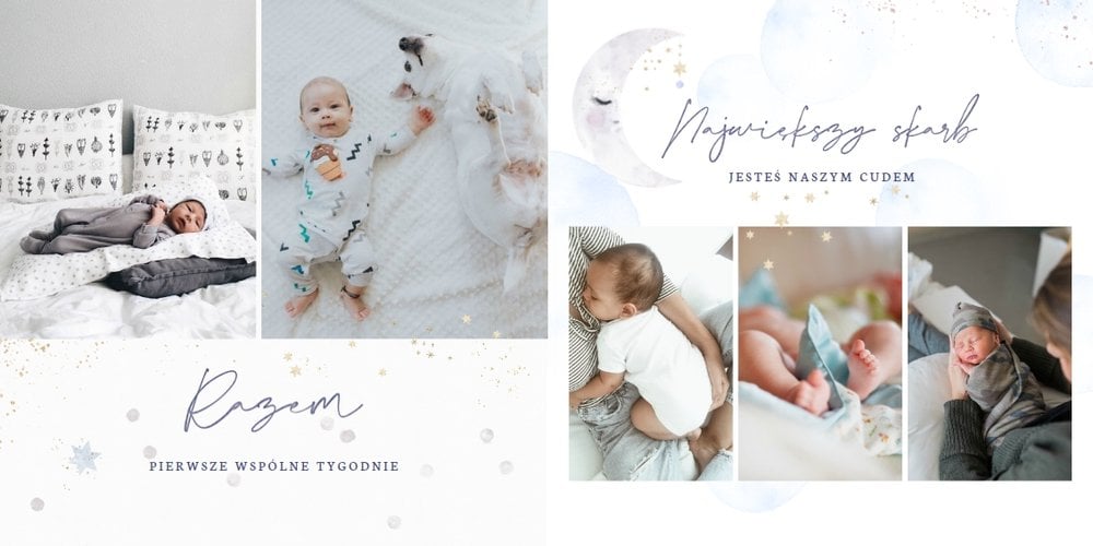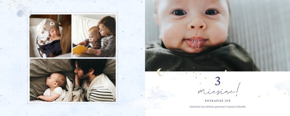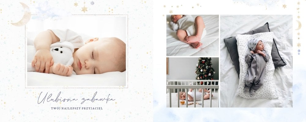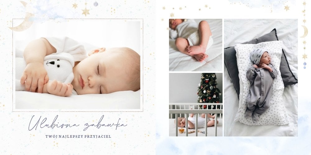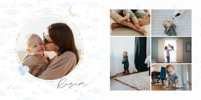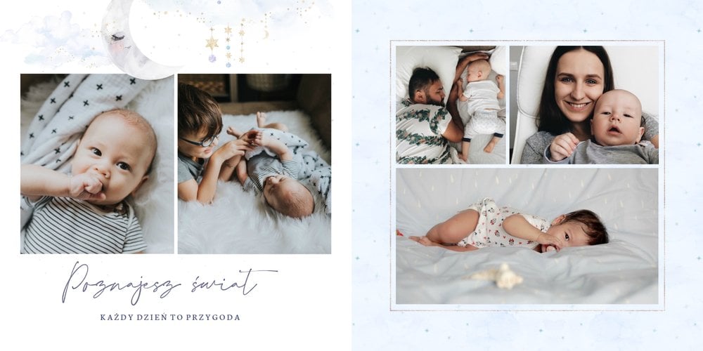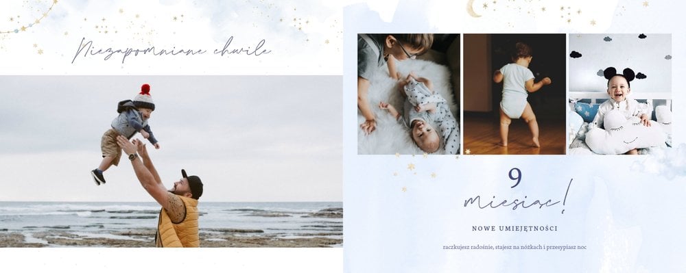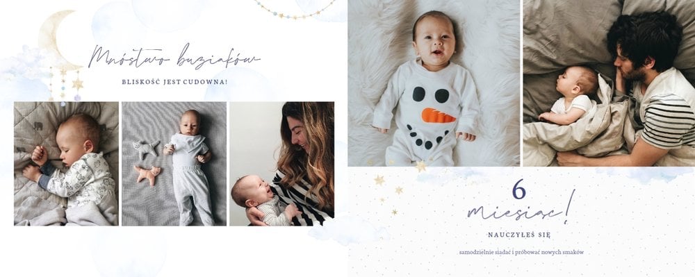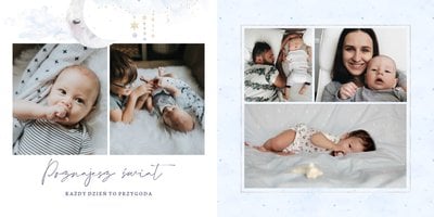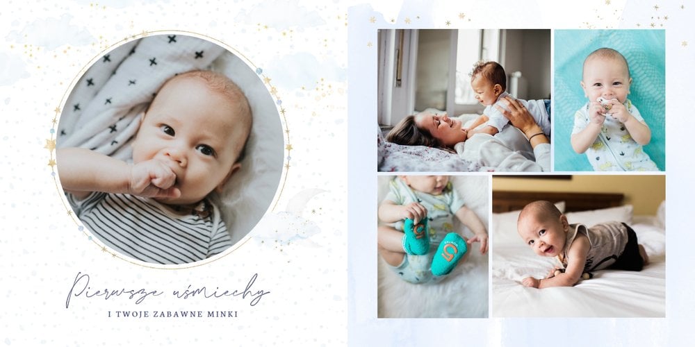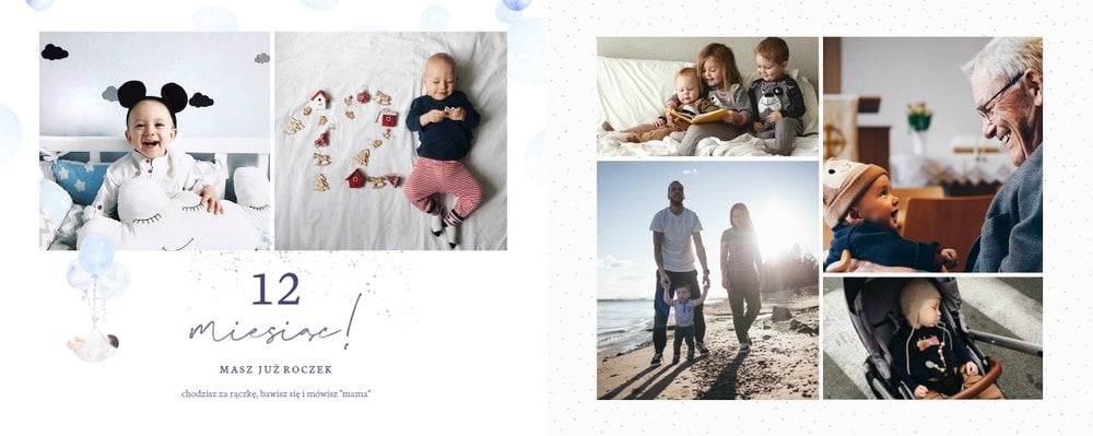 Podtrzymaj ulotne wspomnienia z pierwszego roku Twojej pociechy i wybierz fotoalbum z szablonem "Roczek synka". W tym intensywnym okresie każda zmiana jest cenna, dlatego śmiało utrwal zarówno te ważne, jak i najzwyklejsze momenty.