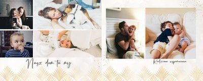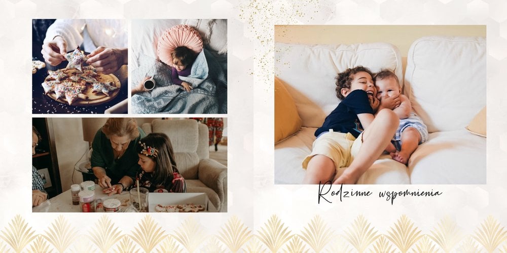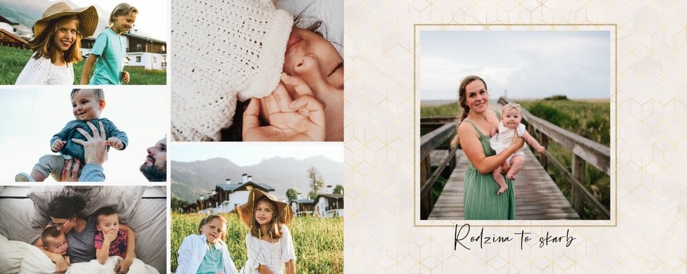 Każda chwila w otoczeniu rodzinny to bezcenny moment. Z szablonem "Rodzinne chwile" zachowasz najważniejsze chwile w niezwykłym fotoalbumie. Wnętrze zapewni Ci mnóstwo miejsca na rodzinne ujęcia z wszystkich uroczystości. Całość szablonu jest minimalistyczna, wzbogacona o złote elementy graficzne oraz pełne miłości napisy. Uzupełnij zdjęcia o bezcenne i pełne miłości rodzinne zdjęcia.