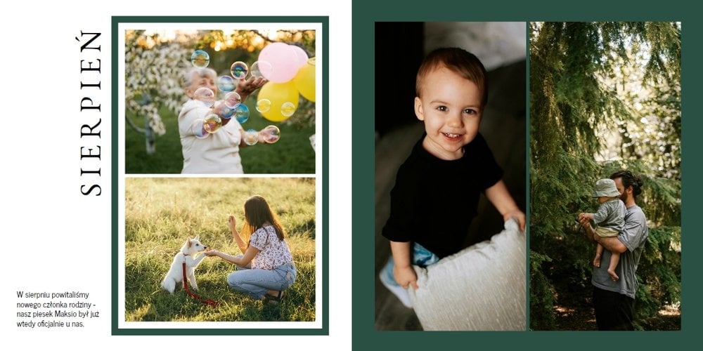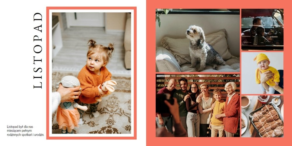 Jeśli posiadasz zdjęcia z poprzednich lat, możesz je również zachować w postaci fotoalbumu z szablonem "Rodzinne podsumowanie roku". Stwórz kolekcję wspomnień ze zdjęć z całego roku i wracaj do nich, przeglądając je wraz z Twoimi bliskimi. Tak zaprojektowany fotoalbum to idealny prezent na nowy rok dla Ciebie i Twojej rodziny.