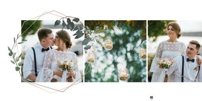 Rustykalny szyk to propozycja dla osób ceniących tradycję, naturę i minimalizm. Wypełnij fotoalbum po brzegi zdjęciami ze ślubu i nadaj mi drugie życie! Szablon Rustykalny szyk to minimalistyczna forma upiększenia Twoich ślubnych fotografii, które dodatkowo opatrzone będą złotymi napisami graficznymi. Całość w połączeniu z zielenią prezentuje się zjawiskowo. Nie ma wątpliwości, że tak przygotowany fotoalbum skradnie Wasze serca.