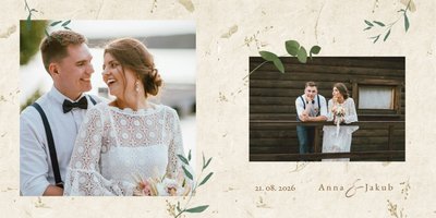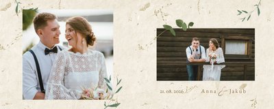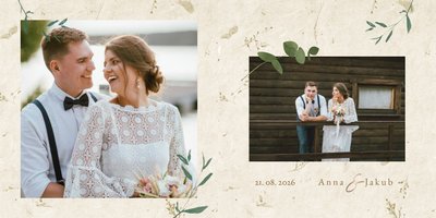 Rustykalny szyk to propozycja dla osób ceniących tradycję, naturę i minimalizm. Wypełnij fotoalbum po brzegi zdjęciami ze ślubu i nadaj mi drugie życie! Szablon Rustykalny szyk to minimalistyczna forma upiększenia Twoich ślubnych fotografii, które dodatkowo opatrzone będą złotymi napisami graficznymi. Całość w połączeniu z zielenią prezentuje się zjawiskowo. Nie ma wątpliwości, że tak przygotowany fotoalbum skradnie Wasze serca.
