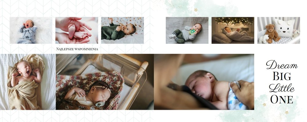 Szablon Dziecięcy to szablon, który sprawi radość wszystkim młodym mamom i nie tylko. Zbierz najpiękniejsze wspomnienia z najważniejszych momentów życia Twojego dziecka i zaprojektuj wyjątkowy fotoalbum. Pastelowe kolory, oryginalne układy zdjęć i mnóstwo miejsca na mamine notatki pozwolą cieszyć się wspomnieniami utrwalonymi na zdjęciach przez długi czas.