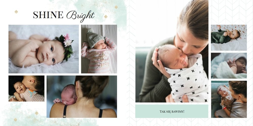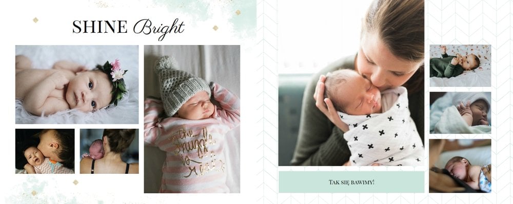 Szablon Dziecięcy to szablon, który sprawi radość wszystkim młodym mamom i nie tylko. Zbierz najpiękniejsze wspomnienia z najważniejszych momentów życia Twojego dziecka i zaprojektuj wyjątkowy fotoalbum. Pastelowe kolory, oryginalne układy zdjęć i mnóstwo miejsca na mamine notatki pozwolą cieszyć się wspomnieniami utrwalonymi na zdjęciach przez długi czas.