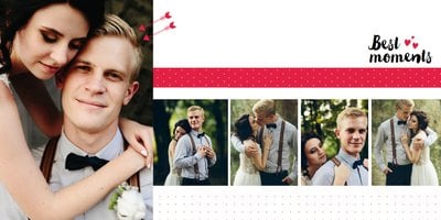 Z szablonem Najważniejszy dzień zaprojektujesz niezwykłą fotoksiążkę lub ekskluzywny fotoalbum z najpiękniejszymi zdjęciami z Waszego ślubu. Ten najważniejszy moment w Waszym życiu zasługuje na wyjątkową oprawę! Minimalistyczna forma, oryginalne układy zdjęć i piękne, czerwone dodatki, pozwolą Wam się cieszyć ślubnymi wspomnieniami przez wiele, wiele lat. Spraw przyjemność sobie i Twoim bliskim!