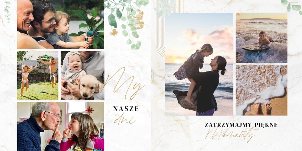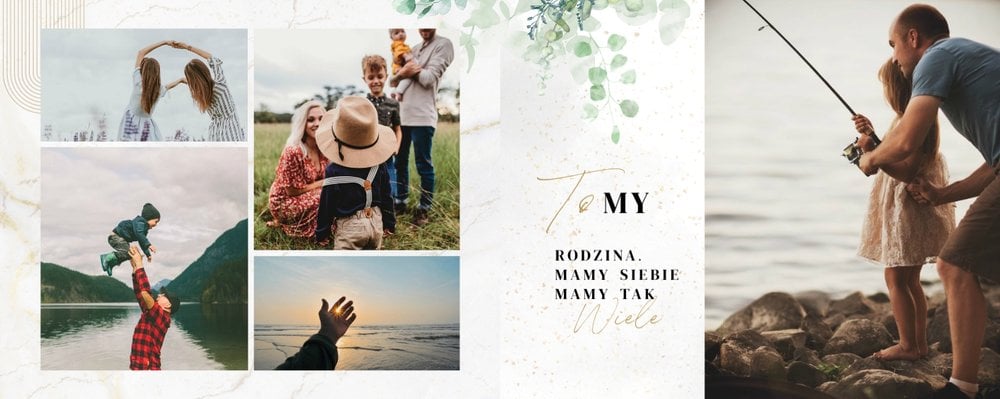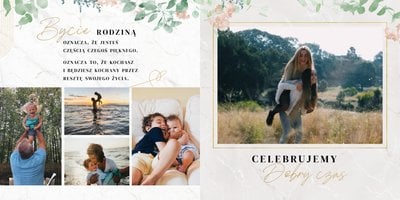 Rodzinny czas, to najlepszy czas! Też jesteś tego zdania? Jeśli tak, to wybierz dopracowany szablon "Skarby naszej rodziny" i zachowaj w nim najpiękniejsze, spędzone w rodzinnym gronie chwile. Wewnątrz szablonu znajdziesz mnóstwo miejsca na zdjęcia z rodzinnych wakacji, uroczystości i innych ważnych dla wydarzeń. My zapewniamy, że nie zabraknie Ci miejsca na żadną fotografię!