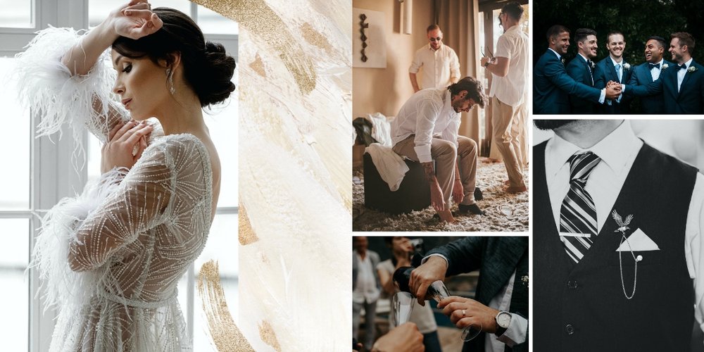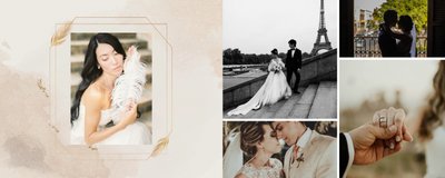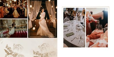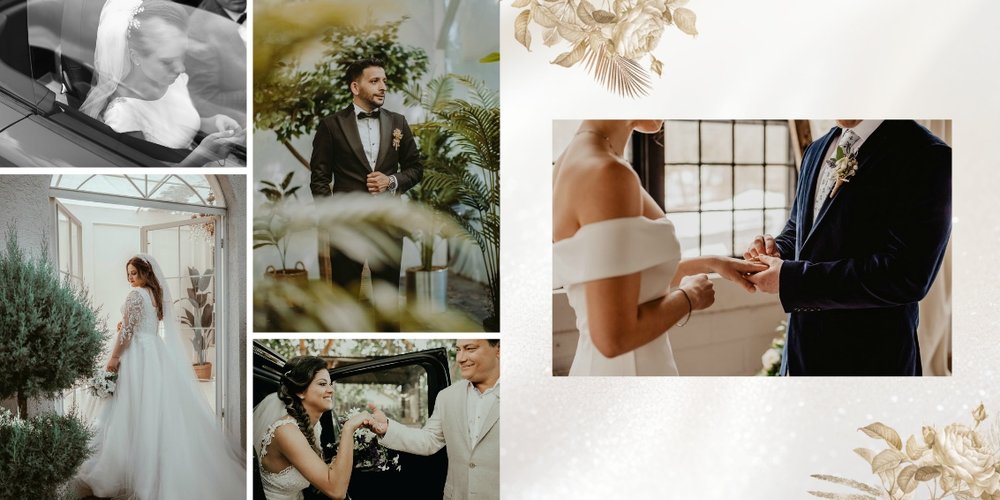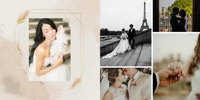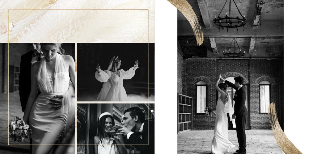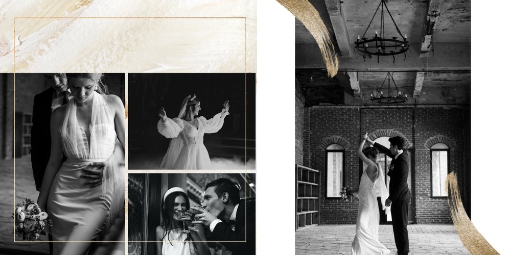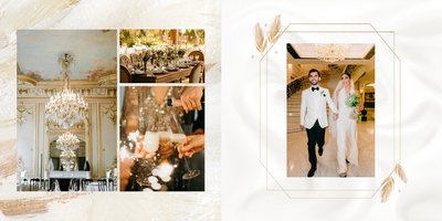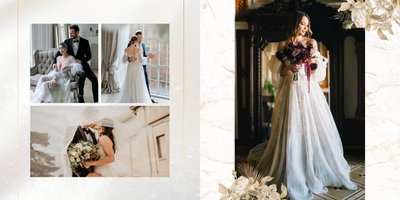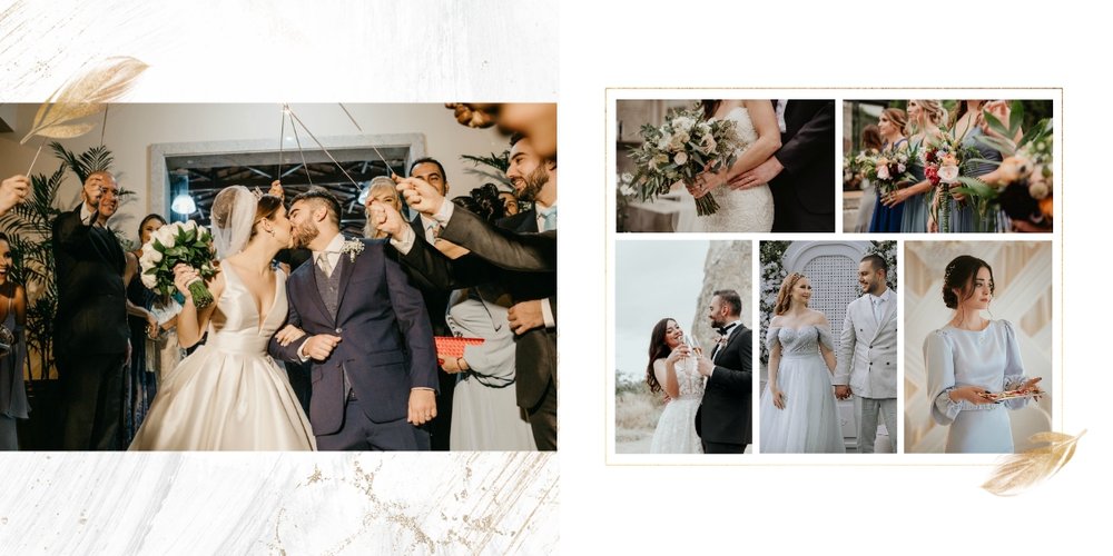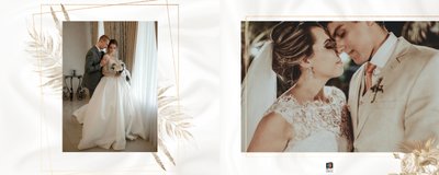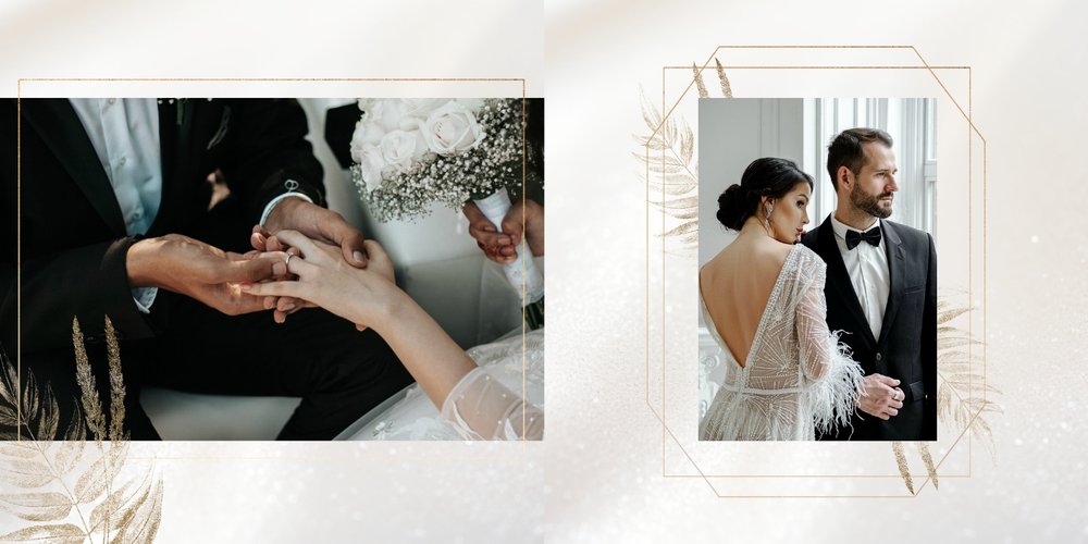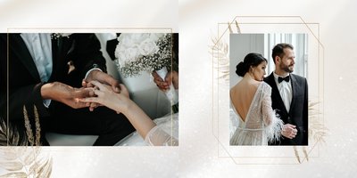 Szablon "Ślub glamour" to połączenie wyrafinowanej elegancji z odrobiną błysku i klasycznego luksusu. Jest idealną propozycją dla wszystkich młodych par chcących uwiecznić swoje wspomnienia ze ślubu w stylu glamour. Głównym motywem przewodnim są metaliczne kolory, które królują na wszystkich stronach szablonu. Cienkie i eleganckie ramki, pióra, kompozycje kwiatowe oraz inne dodatki graficzne zostały utworzone w trzech wariantach kolorystycznych, skupiających się wokół złota, srebra i rose gold. Całość uzupełniają delikatne tła w motywie satyny i marmuru, które podkreślą szyk każdego zdjęcia.