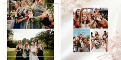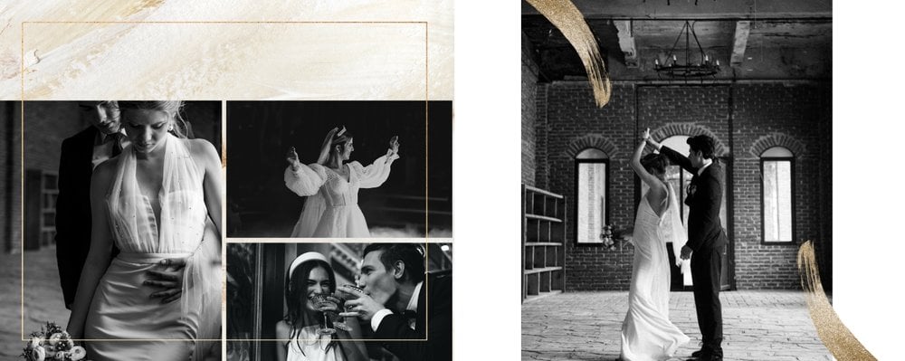 Szablon "Ślub glamour" to połączenie wyrafinowanej elegancji z odrobiną błysku i klasycznego luksusu. Jest idealną propozycją dla wszystkich młodych par chcących uwiecznić swoje wspomnienia ze ślubu w stylu glamour. Głównym motywem przewodnim są metaliczne kolory, które królują na wszystkich stronach szablonu. Cienkie i eleganckie ramki, pióra, kompozycje kwiatowe oraz inne dodatki graficzne zostały utworzone w trzech wariantach kolorystycznych, skupiających się wokół złota, srebra i rose gold. Całość uzupełniają delikatne tła w motywie satyny i marmuru, które podkreślą szyk każdego zdjęcia.