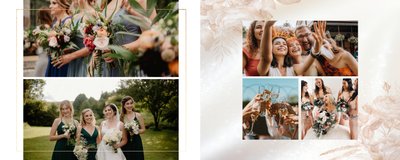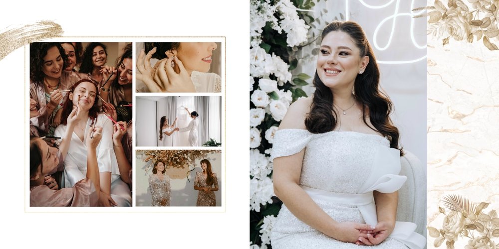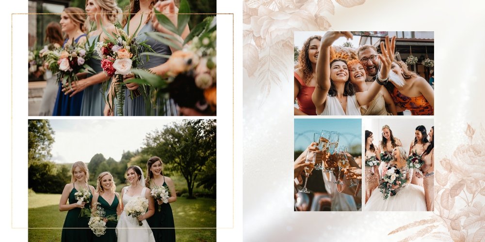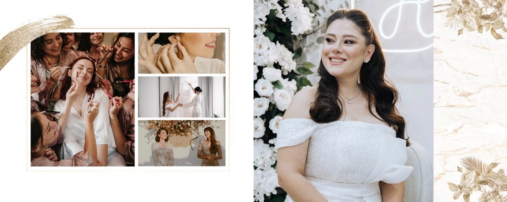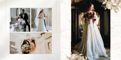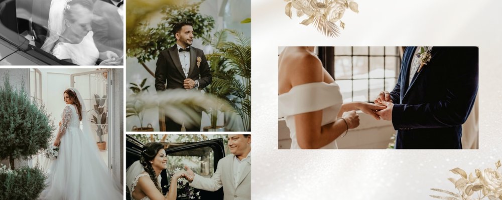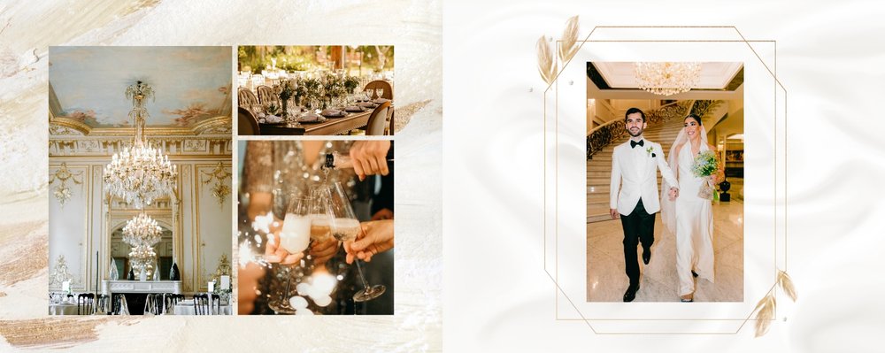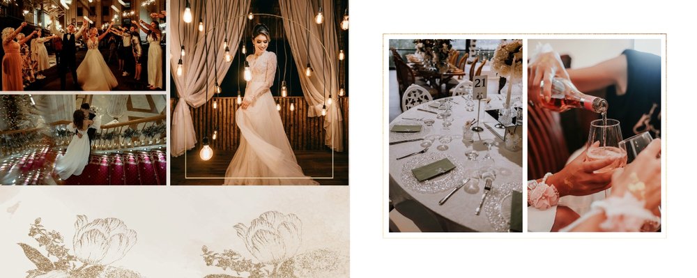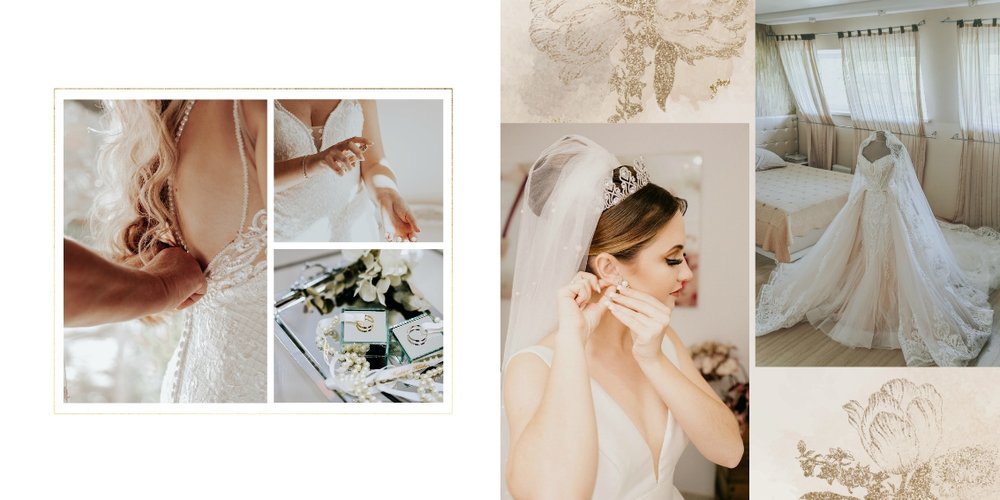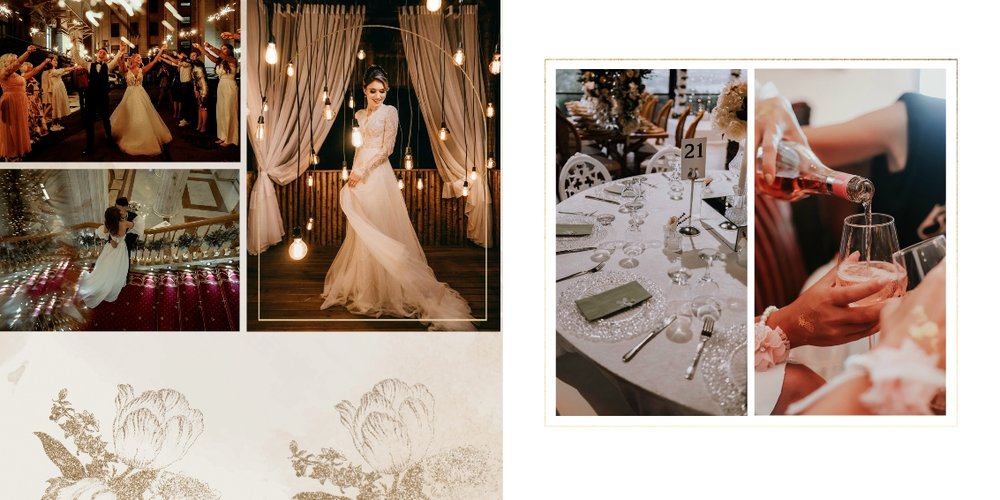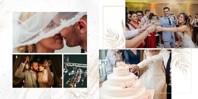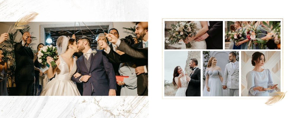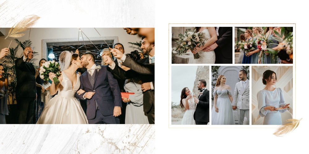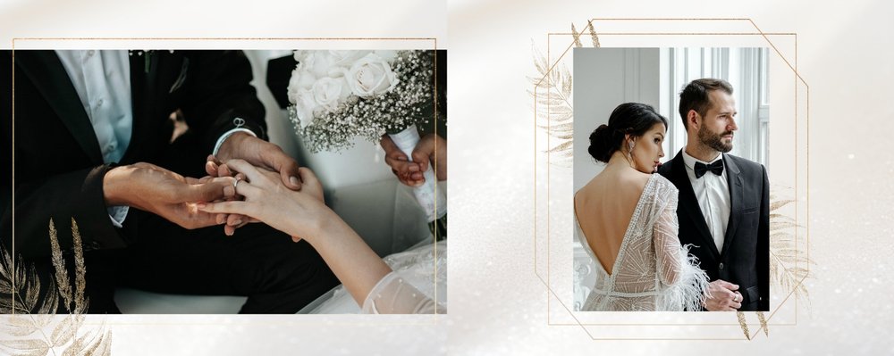 Szablon "Ślub glamour" to połączenie wyrafinowanej elegancji z odrobiną błysku i klasycznego luksusu. Jest idealną propozycją dla wszystkich młodych par chcących uwiecznić swoje wspomnienia ze ślubu w stylu glamour. Głównym motywem przewodnim są metaliczne kolory, które królują na wszystkich stronach szablonu. Cienkie i eleganckie ramki, pióra, kompozycje kwiatowe oraz inne dodatki graficzne zostały utworzone w trzech wariantach kolorystycznych, skupiających się wokół złota, srebra i rose gold. Całość uzupełniają delikatne tła w motywie satyny i marmuru, które podkreślą szyk każdego zdjęcia.