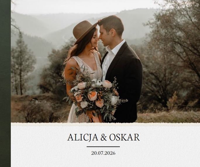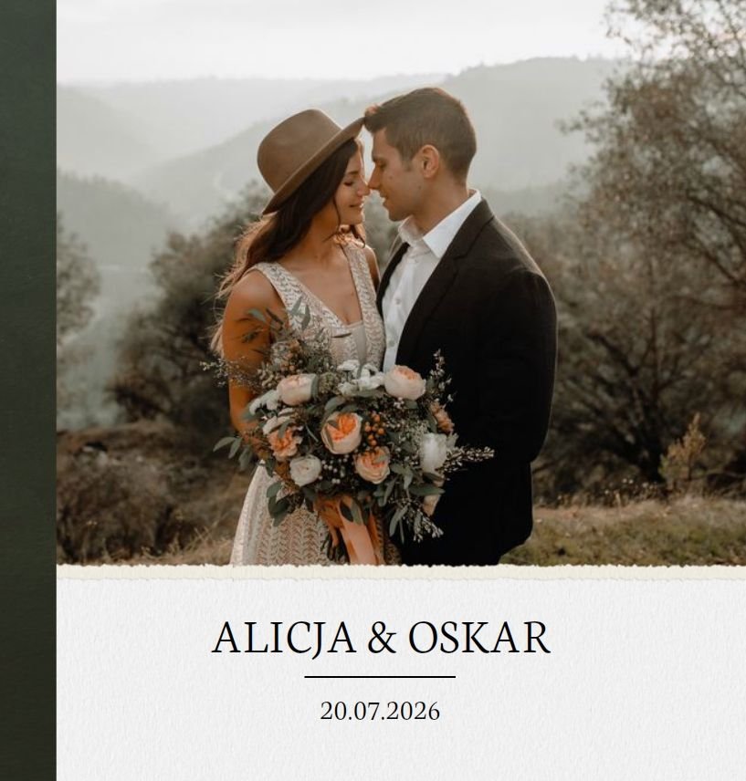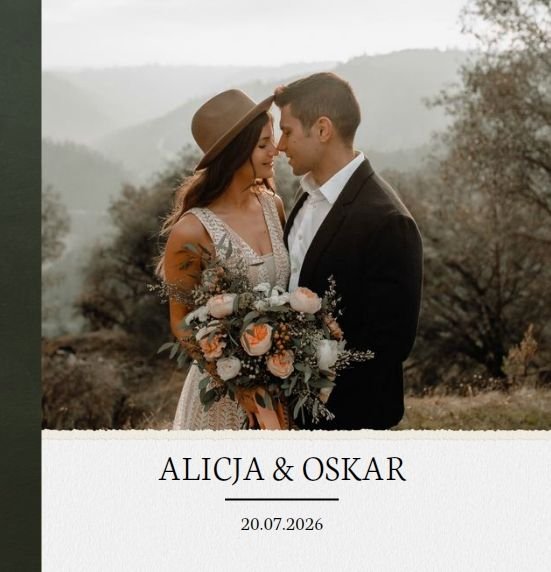 Ślub to wyjątkowe wydarzenie - nieważne w jakiej jest formie. Z szablonem "Ślub humanistyczny" stworzycie piękną pamiątkę z tego cudownego dnia, używając wyłącznie waszych ulubionych zdjęć.
