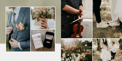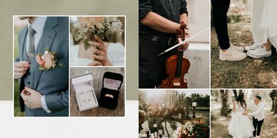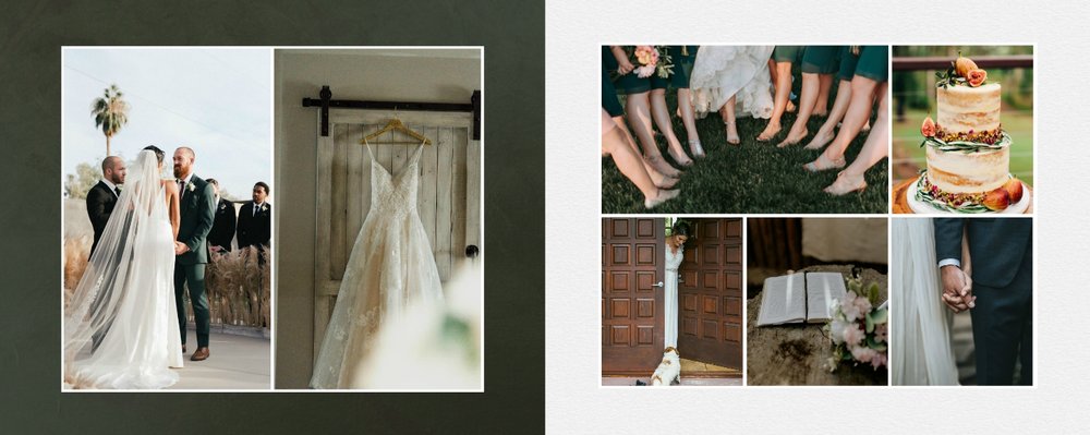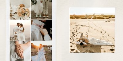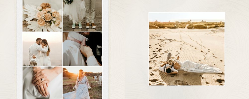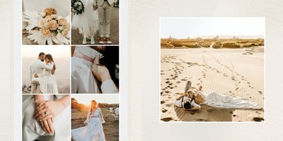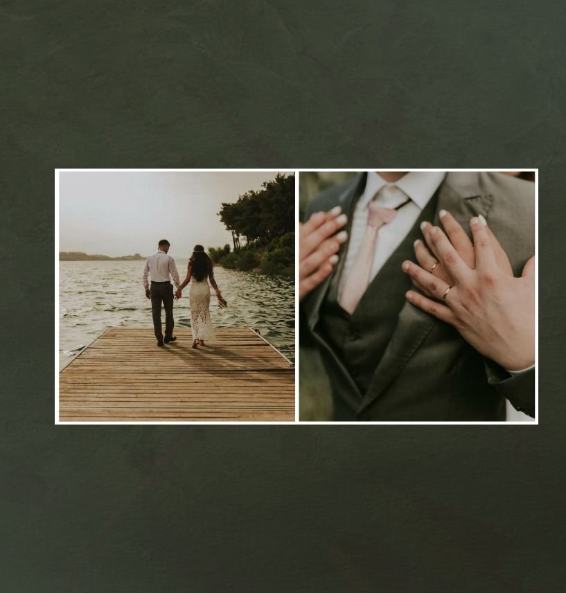 Fotoalbum sprawdzi się zarówno dla fotografii ślubnych w klimacie mniej jak i bardziej tradycyjnych wesel. To minimalistyczna propozycja dla wszystkich młodych par kochających połączenie delikatnej elegancji i natury. Neutralne kolory ziemi - szałwia, zieleń, beż i brąz - podkreślą zdjęcia robione zarówno w plenerze, jak i na pięknie zdobionej sali. Elegancji dodadzą im delikatne, białe ramki.