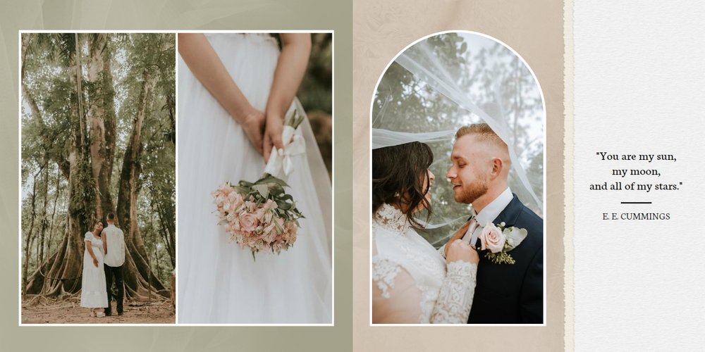 Szablon fotoalbumu został zaprojektowany z myślą o ślubach pełnych emocji i uczuć, podczas których słowa potrafią być zbędne.