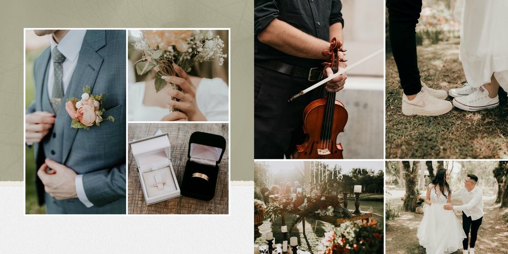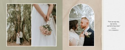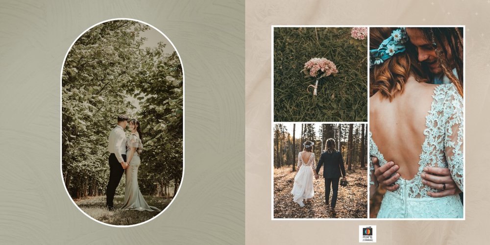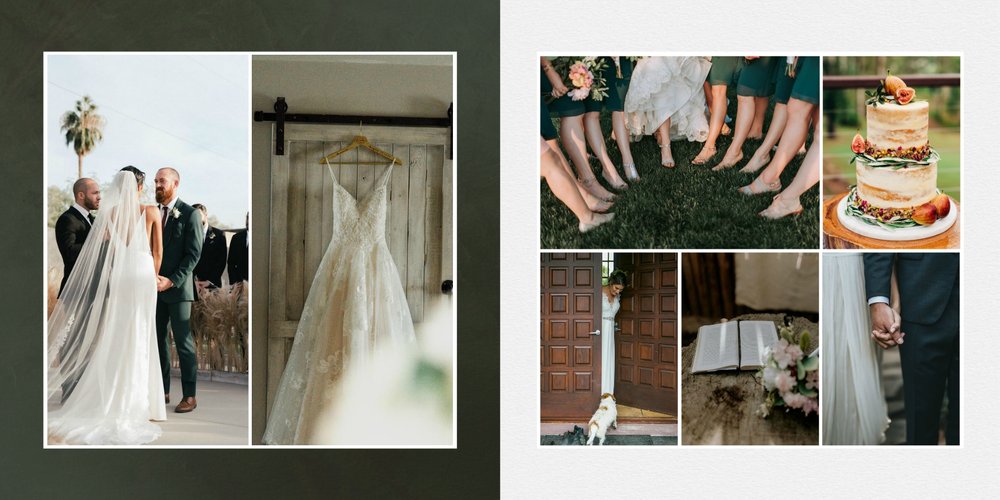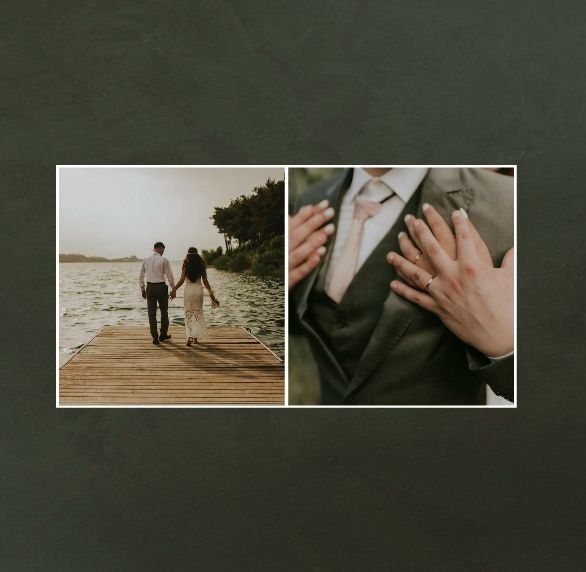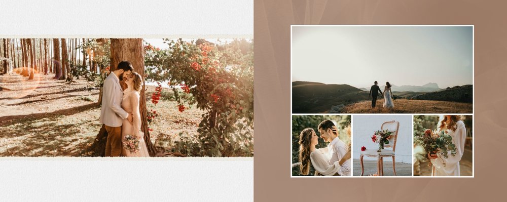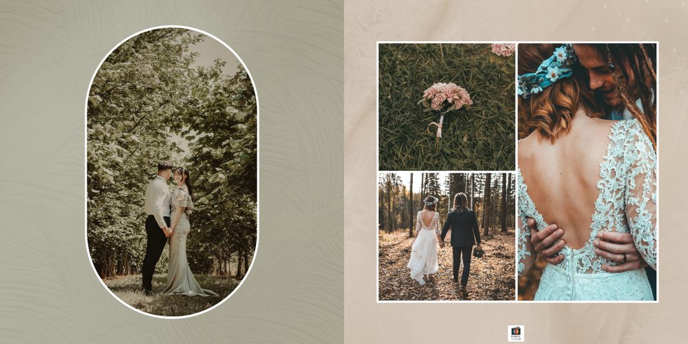 Fotoalbum sprawdzi się zarówno dla fotografii ślubnych w klimacie mniej jak i bardziej tradycyjnych wesel. To minimalistyczna propozycja dla wszystkich młodych par kochających połączenie delikatnej elegancji i natury. Neutralne kolory ziemi - szałwia, zieleń, beż i brąz - podkreślą zdjęcia robione zarówno w plenerze, jak i na pięknie zdobionej sali. Elegancji dodadzą im delikatne, białe ramki.