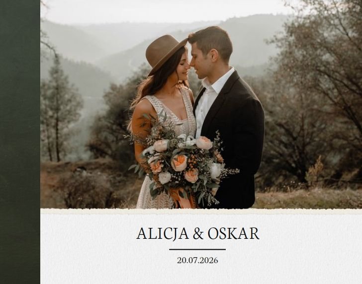 Ślub to wyjątkowe wydarzenie - nieważne w jakiej jest formie. Z szablonem "Ślub humanistyczny" stworzycie piękną pamiątkę z tego cudownego dnia, używając wyłącznie waszych ulubionych zdjęć.