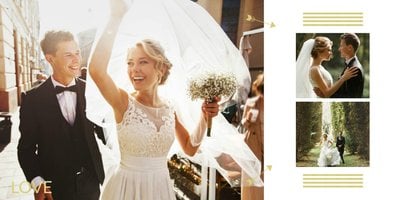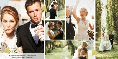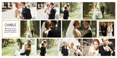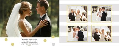 Jak zrobić album na zdjęcia ślubne? Z szablonem Ślubne wspomnienia, to bardzo proste. Uniwersalna kolorystyka, delikatne ozdoby i geometryczna grafika, sprawią że Wasze zdjęcia z wesela staną się jeszcze bardziej wyjątkowe. Fotoksiążka ślubna sprawdzi się również jako świetny pomysł na prezent w ramach podziękowań dla gości weselnych.