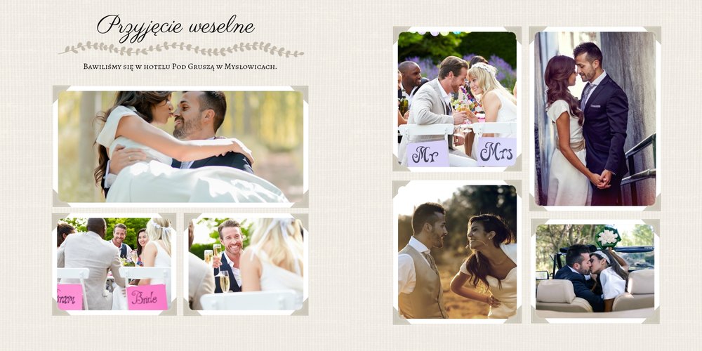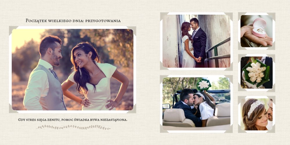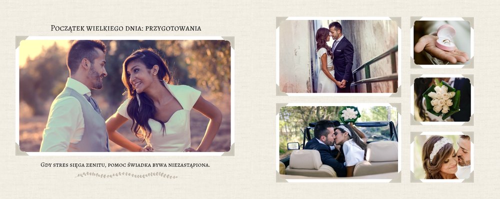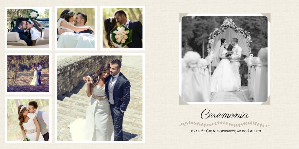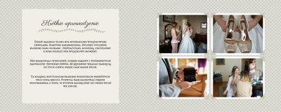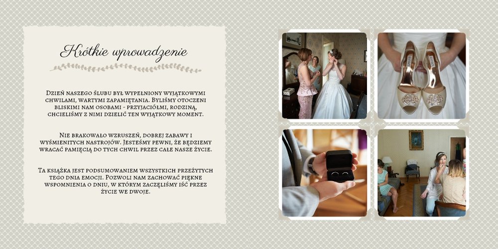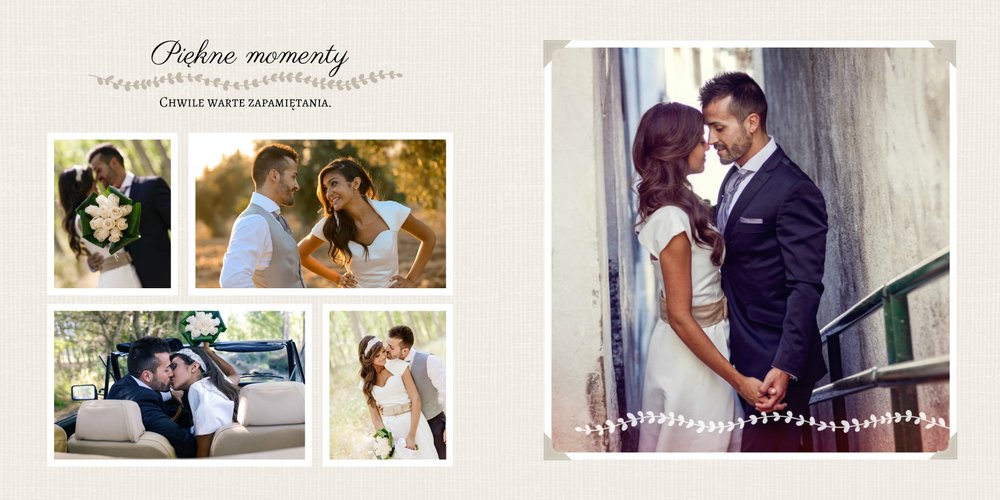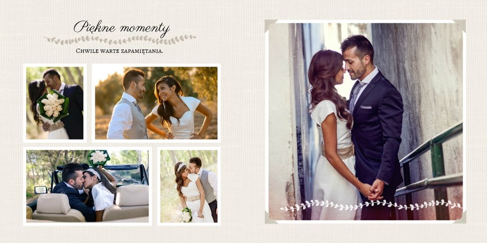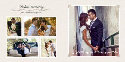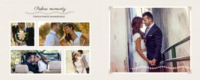 Szablon dedykowany jest Młodym Parom lubiącym uniwersalność. Ulubione zdjęcia ślubne będą idealnie komponować się na stronach fotoksiążki w kolorach srebra i ecru, w towarzystwie delikatnych ornamentów, ozdobnych ramek i dekoracyjnych fontów. Efektem końcowym będzie piękna fotopamiątka pełna drogocennych wspomnień! Szablon idealny na ślubną pamiątkę oraz podziękowanie dla Rodziców.