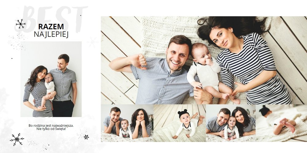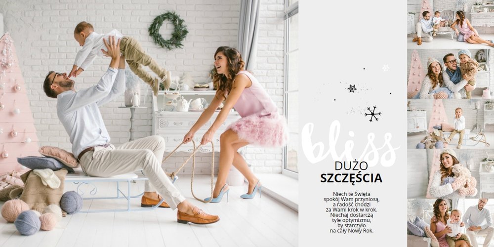 Świąteczne życzenia to szablon, z którym zaprojektujesz idealny prezent świąteczny dla bliskiej Ci osoby. Niesamowita grafika, która tworzy magiczny klimat, oryginalne życzenia świąteczne i mnóstwo miejsca na rodzinne zdjęcia sprawią, że fotoksiążka z tym szablonem stanie się pięknym prezentem świątecznym. Taka książka pozostanie wyjątkową pamiątką na długi, długi czas.