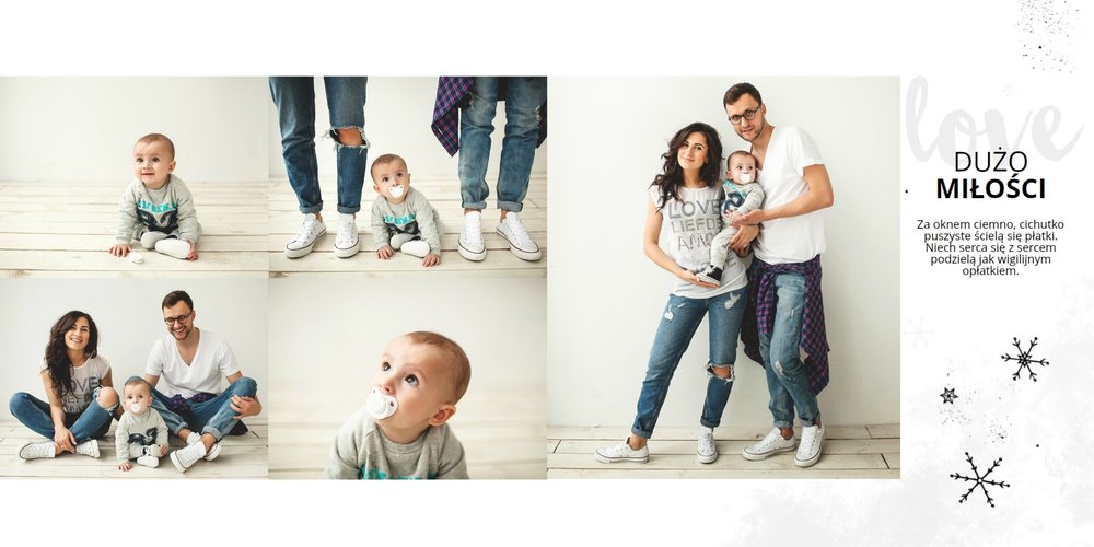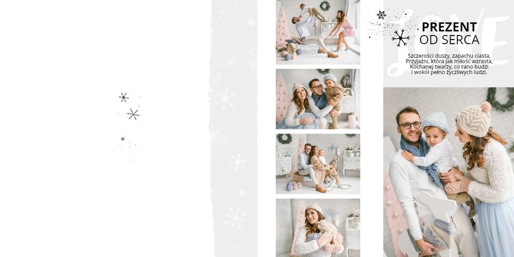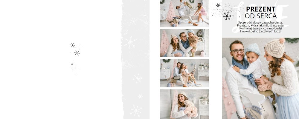 Świąteczne życzenia to szablon, z którym zaprojektujesz idealny prezent świąteczny dla bliskiej Ci osoby. Niesamowita grafika, która tworzy magiczny klimat, oryginalne życzenia świąteczne i mnóstwo miejsca na rodzinne zdjęcia sprawią, że fotoksiążka z tym szablonem stanie się pięknym prezentem świątecznym. Taka książka pozostanie wyjątkową pamiątką na długi, długi czas.