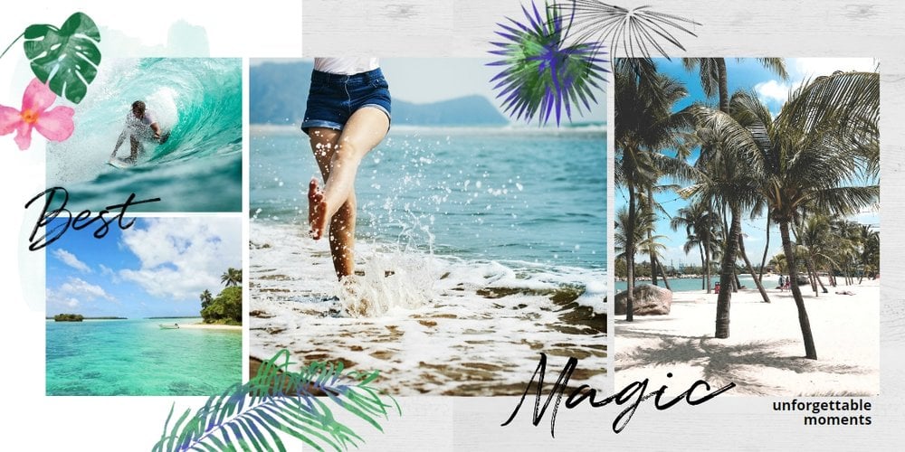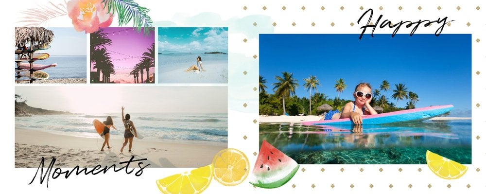 Morza szum, ptaków śpiew... Słowa tej piosenki niech zainspirują Cię do stworzenie fotoalbumu, który przepełniona będzie zdjęciami z Twoich wakacji. Zapełnij strony minimalistyczego szablonu ulubionymi kadrami i ciesz się letnimi wspomnieniami na dłużej. Wewnątrz szablonu Szum fal znajdziesz białe strony oraz wakacyjne dodatki w postaci palm, kwiatów oraz graficznych napisów - wszystko to idealnie dopełni całość Twojej wakacyjnej przygody.