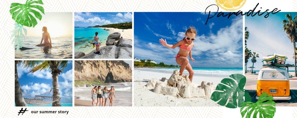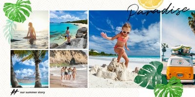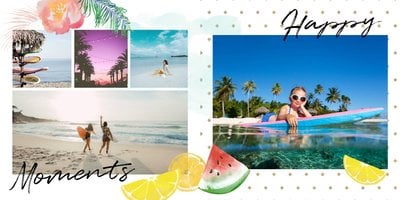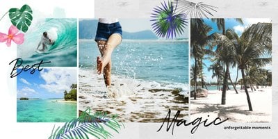 Morza szum, ptaków śpiew... Słowa tej piosenki niech zainspirują Cię do stworzenie fotoalbumu, który przepełniona będzie zdjęciami z Twoich wakacji. Zapełnij strony minimalistyczego szablonu ulubionymi kadrami i ciesz się letnimi wspomnieniami na dłużej. Wewnątrz szablonu Szum fal znajdziesz białe strony oraz wakacyjne dodatki w postaci palm, kwiatów oraz graficznych napisów - wszystko to idealnie dopełni całość Twojej wakacyjnej przygody.