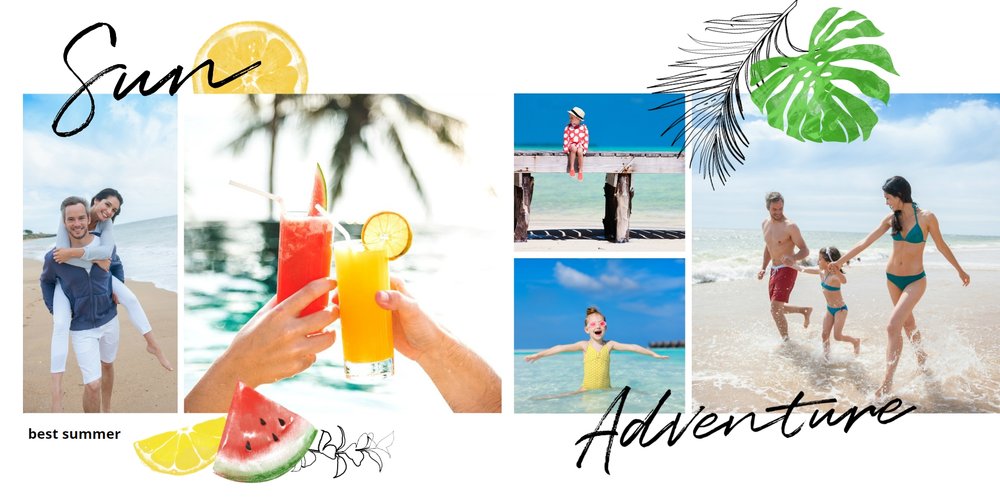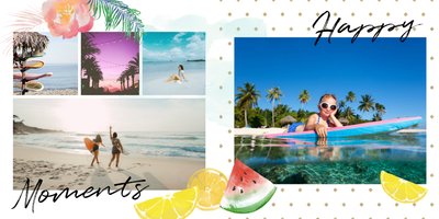 Morza szum, ptaków śpiew... Słowa tej piosenki niech zainspirują Cię do stworzenie fotoalbumu, który przepełniona będzie zdjęciami z Twoich wakacji. Zapełnij strony minimalistyczego szablonu ulubionymi kadrami i ciesz się letnimi wspomnieniami na dłużej. Wewnątrz szablonu Szum fal znajdziesz białe strony oraz wakacyjne dodatki w postaci palm, kwiatów oraz graficznych napisów - wszystko to idealnie dopełni całość Twojej wakacyjnej przygody.