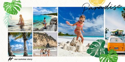 Morza szum, ptaków śpiew... Słowa tej piosenki niech zainspirują Cię do stworzenie fotoalbumu, który przepełniona będzie zdjęciami z Twoich wakacji. Zapełnij strony minimalistyczego szablonu ulubionymi kadrami i ciesz się letnimi wspomnieniami na dłużej. Wewnątrz szablonu Szum fal znajdziesz białe strony oraz wakacyjne dodatki w postaci palm, kwiatów oraz graficznych napisów - wszystko to idealnie dopełni całość Twojej wakacyjnej przygody.