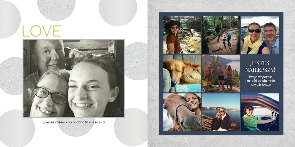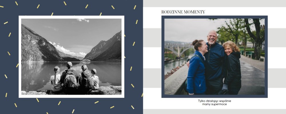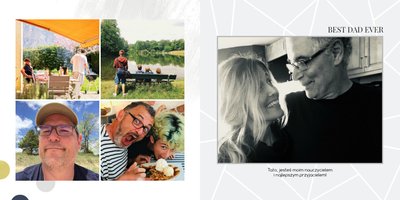 Czerwiec to miesiąc świętowania dla wszystkich Ojców, dlatego z tej okazji przygotowaliśmy szablon W dniu Taty. Z jego pomocą wyrazisz w prosty sposób to, co najtrudniejsze - miłość, wyrazy wdzięczności i podziękowania za wspólne przeżycia. Dzięki temu nowoczesnemu, a jednocześnie eleganckiemu szablonowi zdjęcia Taty nabiorą wdzięku sprawią mu wiele radości w trakcie przeglądania. Decydując się na prezent w formie fotoksiążki masz pewność, że uchwycisz wszystkie chwile z Tatą w jednym miejscu i zadbasz o rodzinne wspomnienia na długie, długie lata. Wewnątrz szablonu znajdziesz białe tła oraz motywy graficzne w odcieniach granatu, szarości i złota - całość tworzy uniwersalny pomysł na prezent dla Taty.