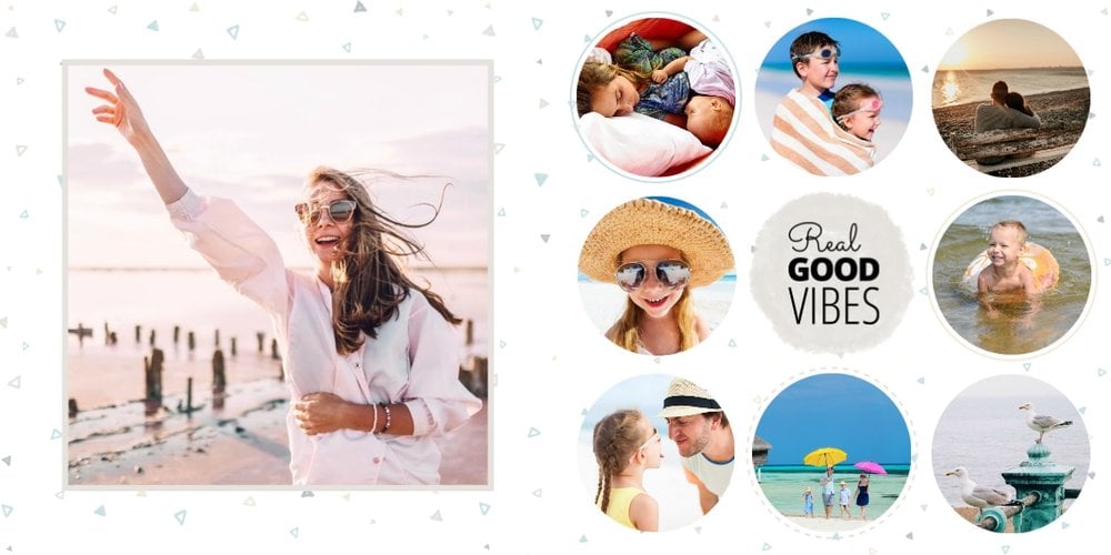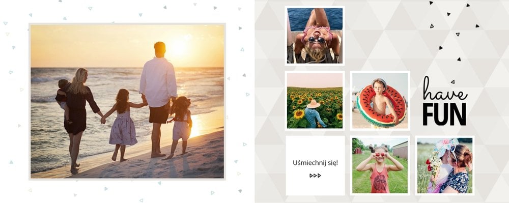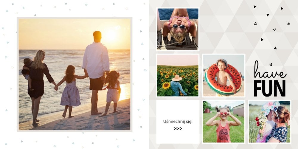 Oto propozycja dla wszystkich uwielbiających spędzać wakacje nad morzem. Fotoalbum zaprojektowany z tym szablonem będzie przepiękną pamiątką każdego wyjazdu nad morze. Jasne tła i delikatne dodatki idealnie skomponują się z kolorowymi zdjęciami z egzotycznych wakacji.