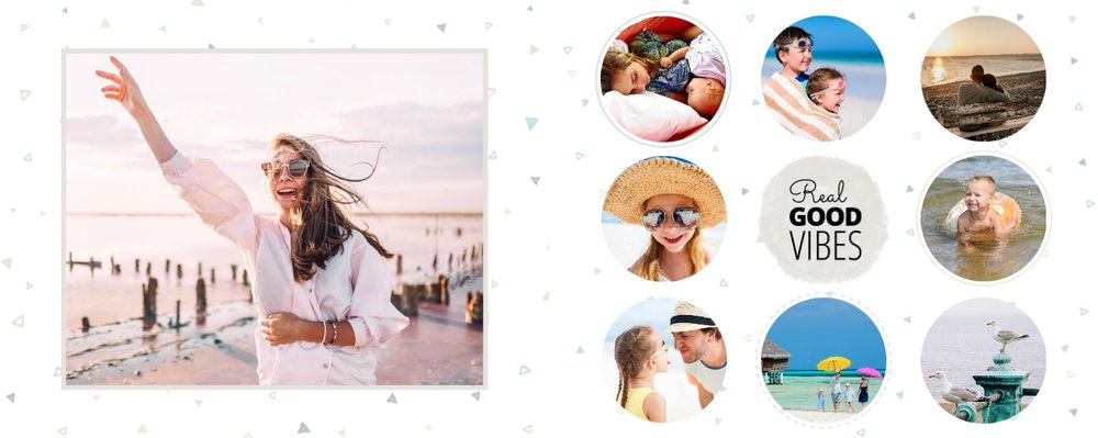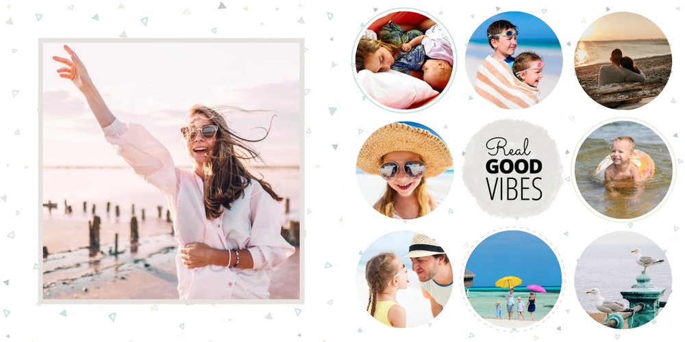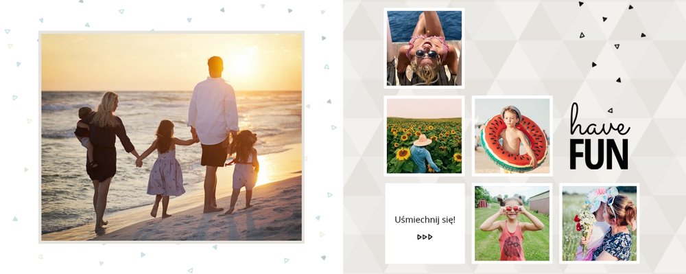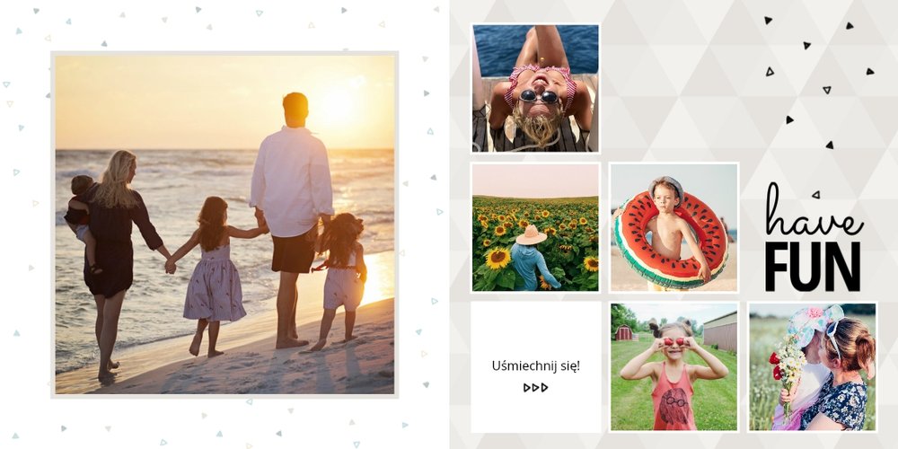 Oto propozycja dla wszystkich uwielbiających spędzać wakacje nad morzem. Fotoalbum zaprojektowany z tym szablonem będzie przepiękną pamiątką każdego wyjazdu nad morze. Jasne tła i delikatne dodatki idealnie skomponują się z kolorowymi zdjęciami z egzotycznych wakacji.
