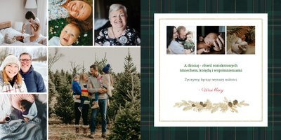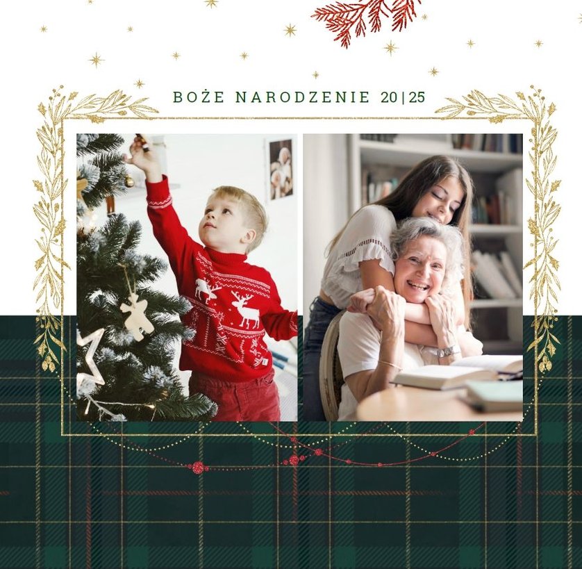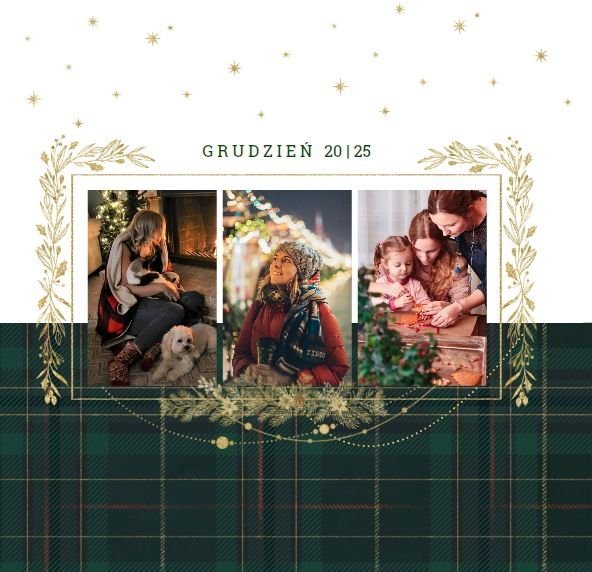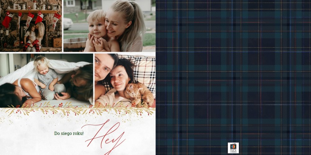 Eleganckie motywy kraty, roślinne ornamenty i złote detale stworzą nowoczesne tło Twoich ulubionych fotografii. Dzięki stonowanej i kolorystyce, fotoalbum z szablonem "Wigilijna niespodzianka", sprawdzi się zarówno w prezencie dla kobiety, jak i mężczyzny.