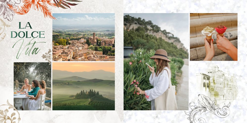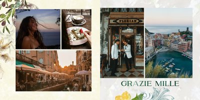 "Włoska pamiątka" to szablon fotoalbumu, który łączy tradycję i nowoczesność, tworząc unikalną przestrzeń do przechowywania Twoich najpiękniejszych chwil.