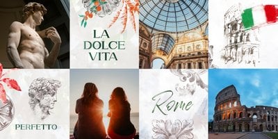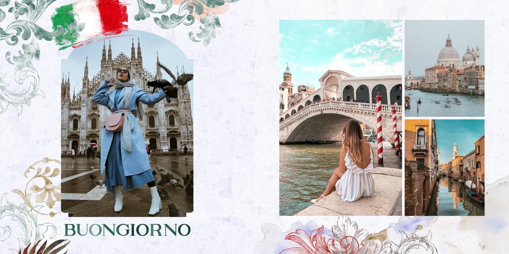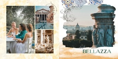 "Włoska pamiątka" to szablon fotoalbumu, który łączy tradycję i nowoczesność, tworząc unikalną przestrzeń do przechowywania Twoich najpiękniejszych chwil.