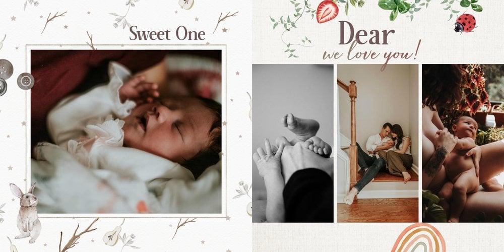 Szablon "Wspomnienia z dzieciństwa" jest idealny do tworzenia fotoalbumu z codziennych zwykłych-niezwykłych momentów malucha. Nie tylko udekoruje on wszystkie słodkie wspomnienia, ale także stworzy niepowtarzalną opowieść, którą będziecie wspólnie odkrywać przez kolejne lata.