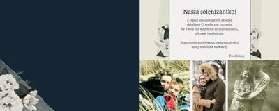 W szablonie dominują odcienie zieleni, beżu i granatu. Niezwykłości dodają złote, subtelne dodatki, które nie dają zapomnieć jakiej okazji pamiątka dotyczy. Kwiatowe wzory zdobią bezcenne fotografie i dodają kobiecości projektowi. Każda strona fotoalbumu "Z okazji 50 urodzin" posiada miejsca na cudowne chwile z życia solenizantki - te spędzone z rodziną czy przyjaciółmi. Możesz skorzystać z propozycji gotowego szablonu, zyskując w kilka chwil oryginalny prezent lub każdą stronę dostosować do własnych potrzeb - zmieniając teksty, układ elementów, czy wielkość i ilość komórek zdjęciowych.