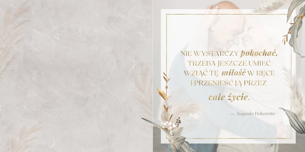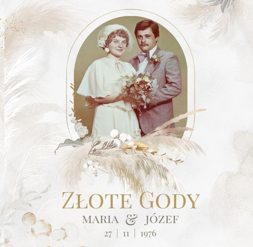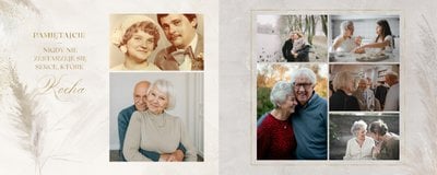 Fotoalbum z szablonem "Złote gody" to wzruszający zbiór wspomnień, który przypomni o najpiękniejszych chwilach. Wystarczy, że wypełnisz komórki zdjęciowe obecnymi fotografiami najbliższych, ale i zeskanowanymi zdjęciami sprzed lat. Ich dopełnienie będą stanowić gotowe teksty, życzenia i sentencje, które z pewnością wywołają masę wzruszeń.