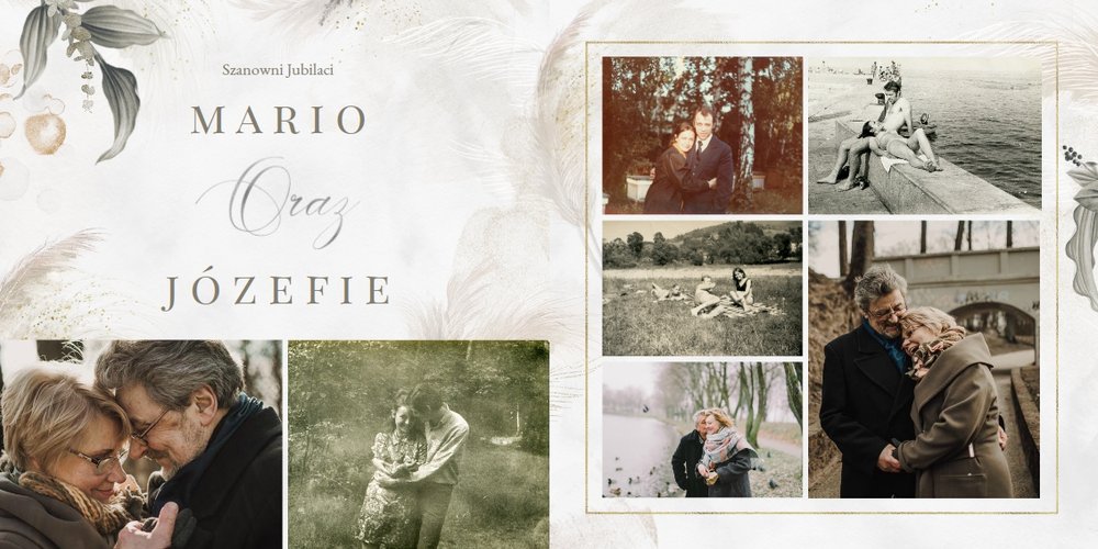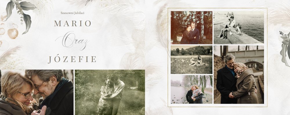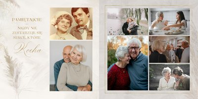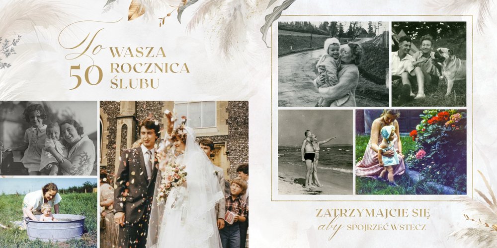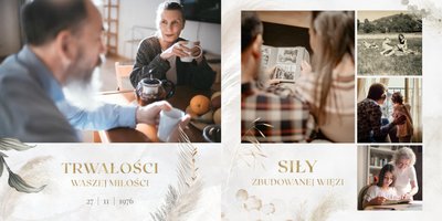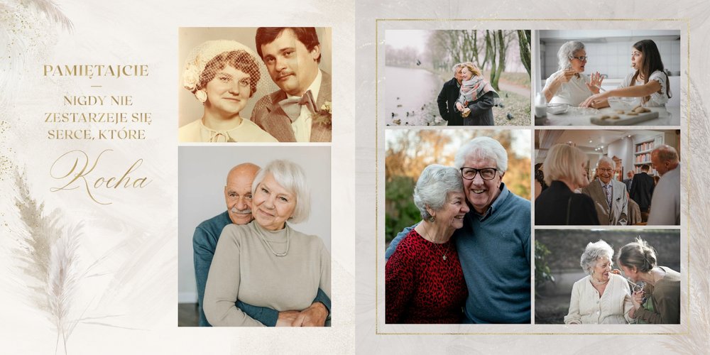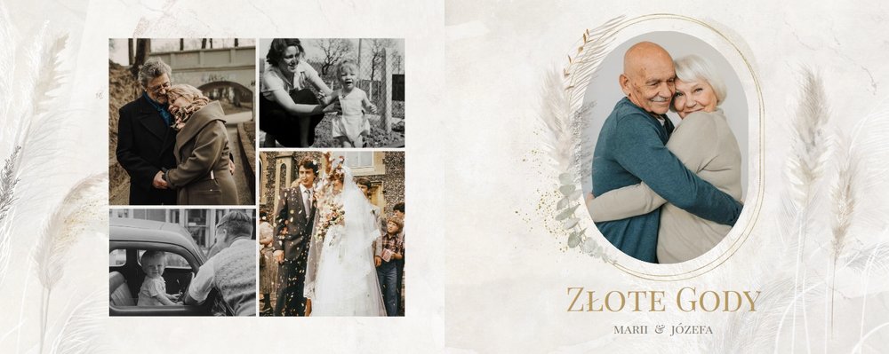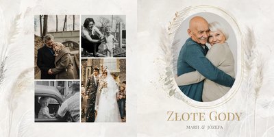 Fotoalbum z szablonem "Złote gody" to wzruszający zbiór wspomnień, który przypomni o najpiękniejszych chwilach. Wystarczy, że wypełnisz komórki zdjęciowe obecnymi fotografiami najbliższych, ale i zeskanowanymi zdjęciami sprzed lat. Ich dopełnienie będą stanowić gotowe teksty, życzenia i sentencje, które z pewnością wywołają masę wzruszeń.